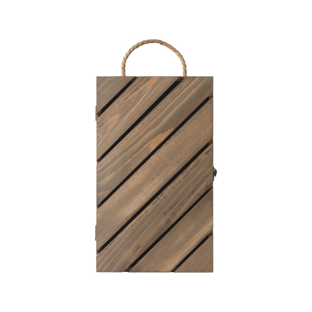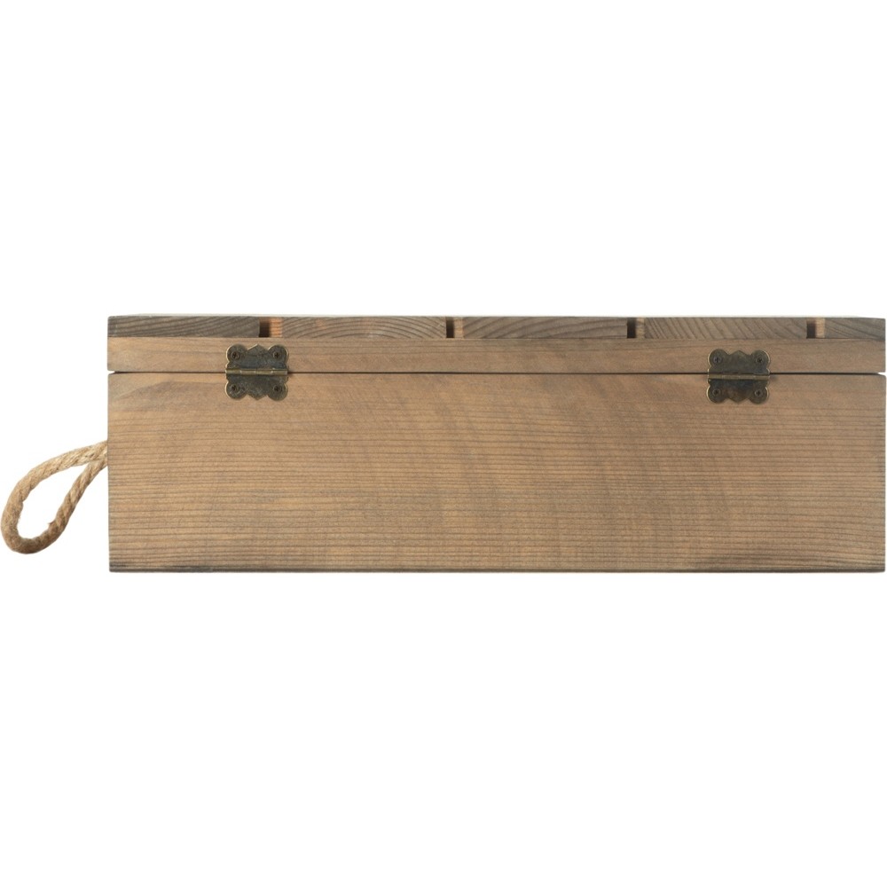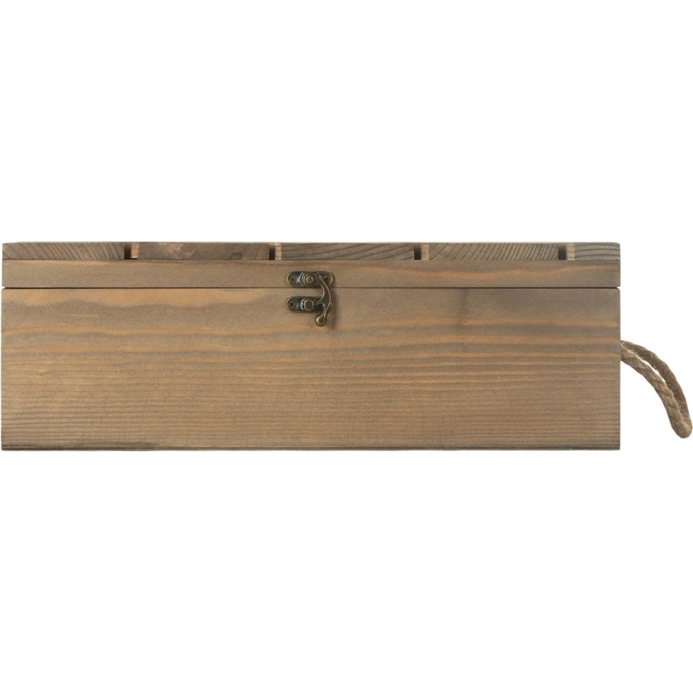 "Two-bootle box" выполнена из массива сосны, поэтому имеет непередаваемый аромат смолы и благородную текстуру дерева.