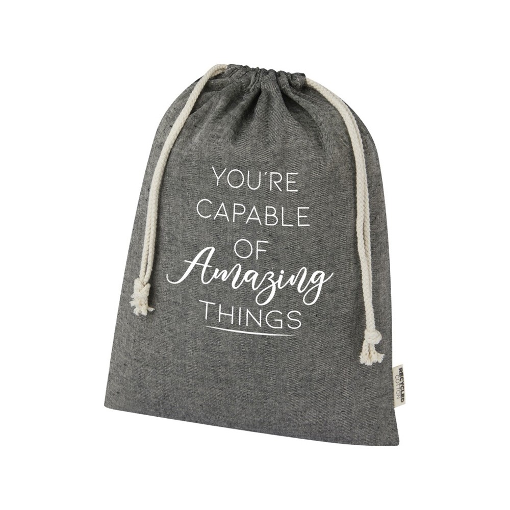 Подарочная сумка из хлопка, переработанного по стандарту GRS, с хлопковым шнурком для затягивания. Идеально подходит для подарков или хранения предметов. Размер: 30 x 42 см.