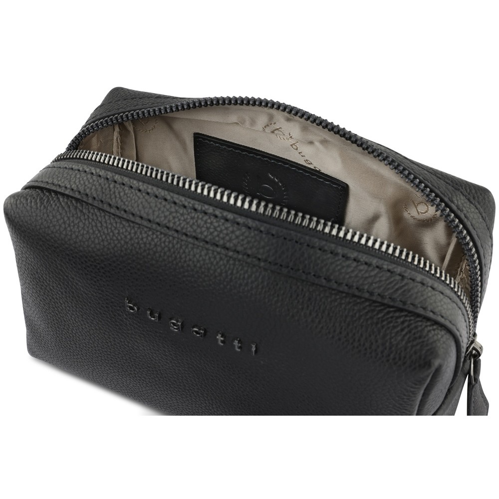 • Косметичка BUGATTI БЕЛЛА | BELLA, чёрная, воловья кожа/полиэстер, 19х8,5х11 см