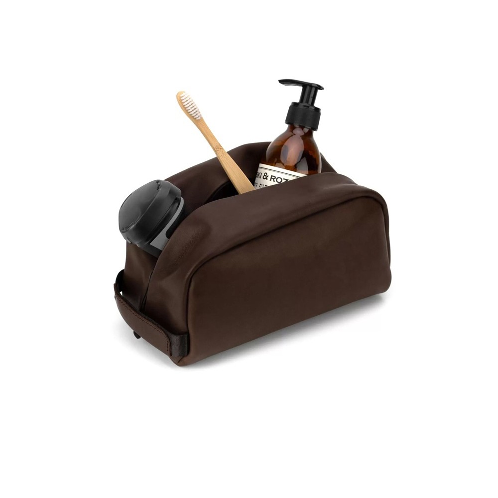 Косметичка, она же Dop Kit, предназначена для хранения и переноски всяких дорожных принадлежностей, предметов гигиены, инструментов или каких-нибудь зарядок для гаджетов. Косметичка изготовлена целиком из натуральной кожи и закрывается на молнию.