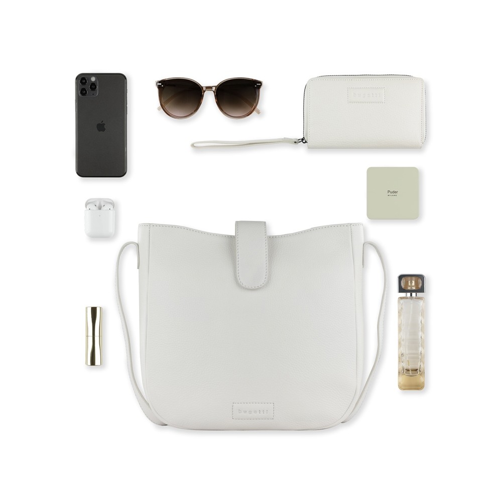 • Сумка женская BUGATTI ЭЛЬЗА | ELSA, белая, воловья кожа/полиэстер, 29х8х27 см