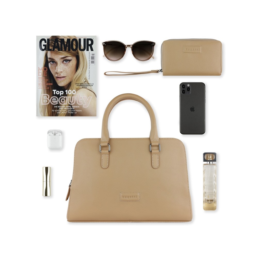 • Сумка женская BUGATTI ЭЛЬЗА | ELSA, песочного цвета, воловья кожа/полиэстер, 32х13х22 см