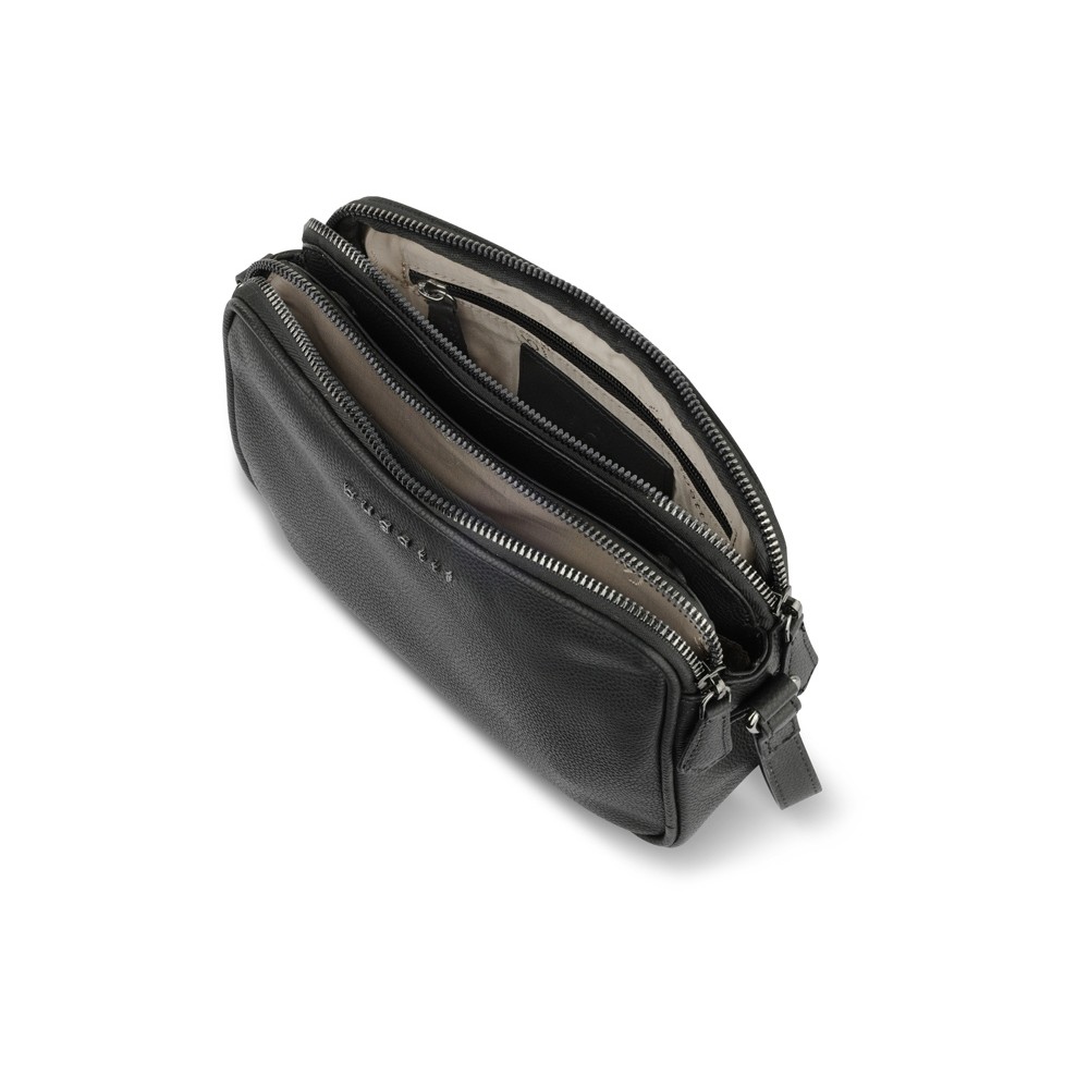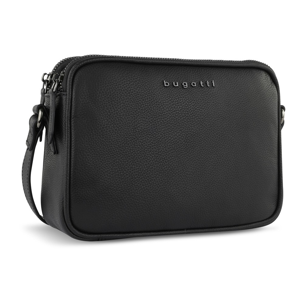 • Сумка кросс-боди женская BUGATTI БЕЛЛА | BELLA, чёрная, воловья кожа/полиэстер, 22х6х15,5 см