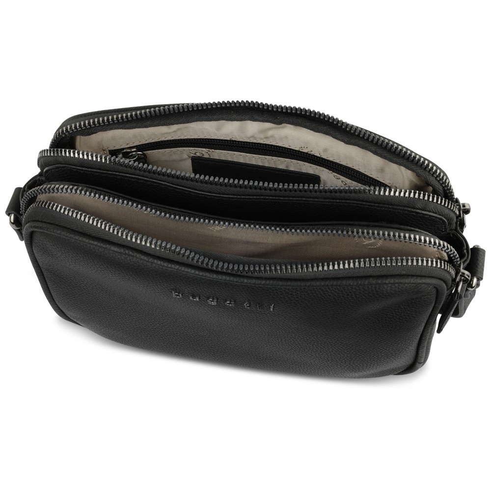 Сумка кросс-боди женская BUGATTI БЕЛЛА | BELLA, чёрная, воловья кожа/полиэстер, 22х6х15,5 см
