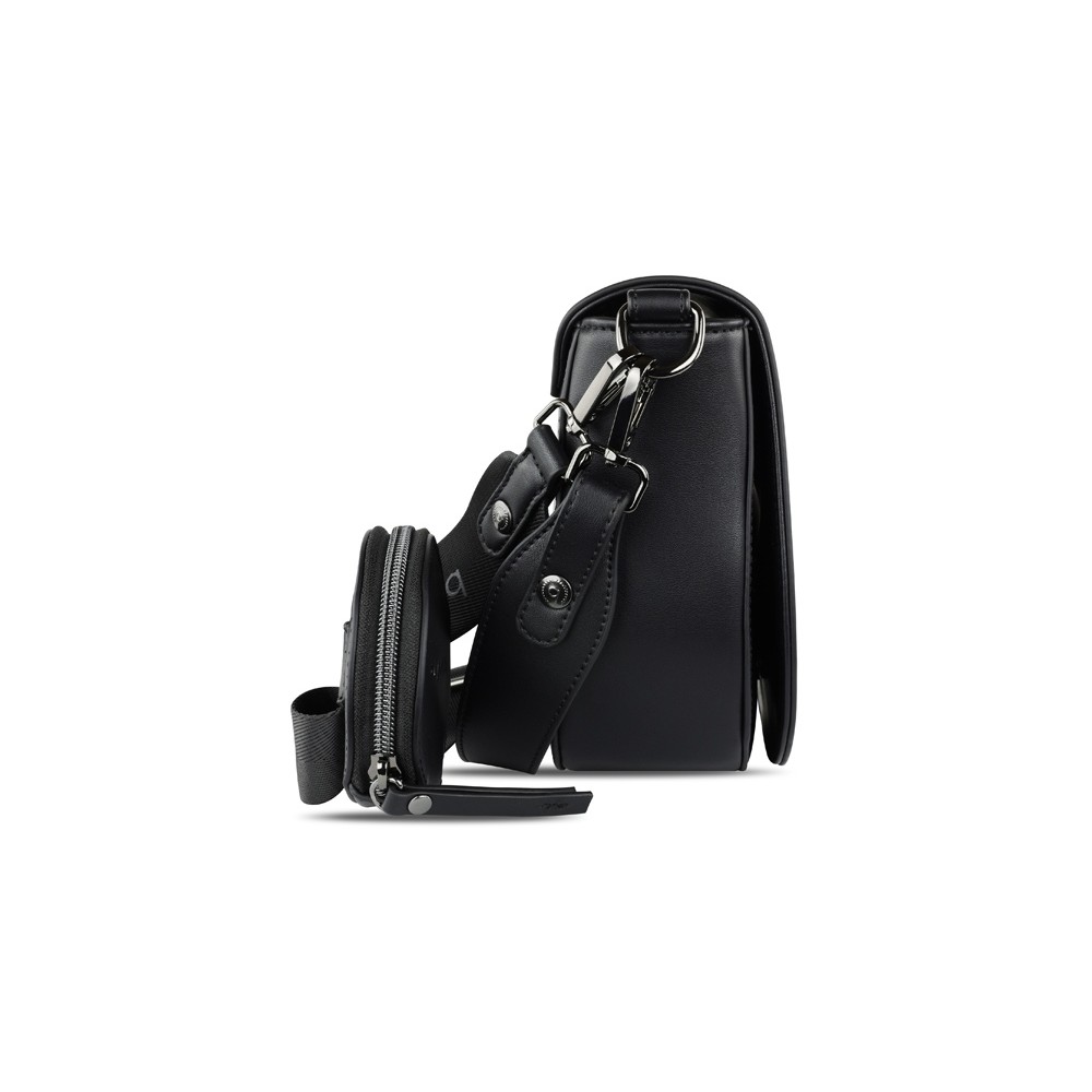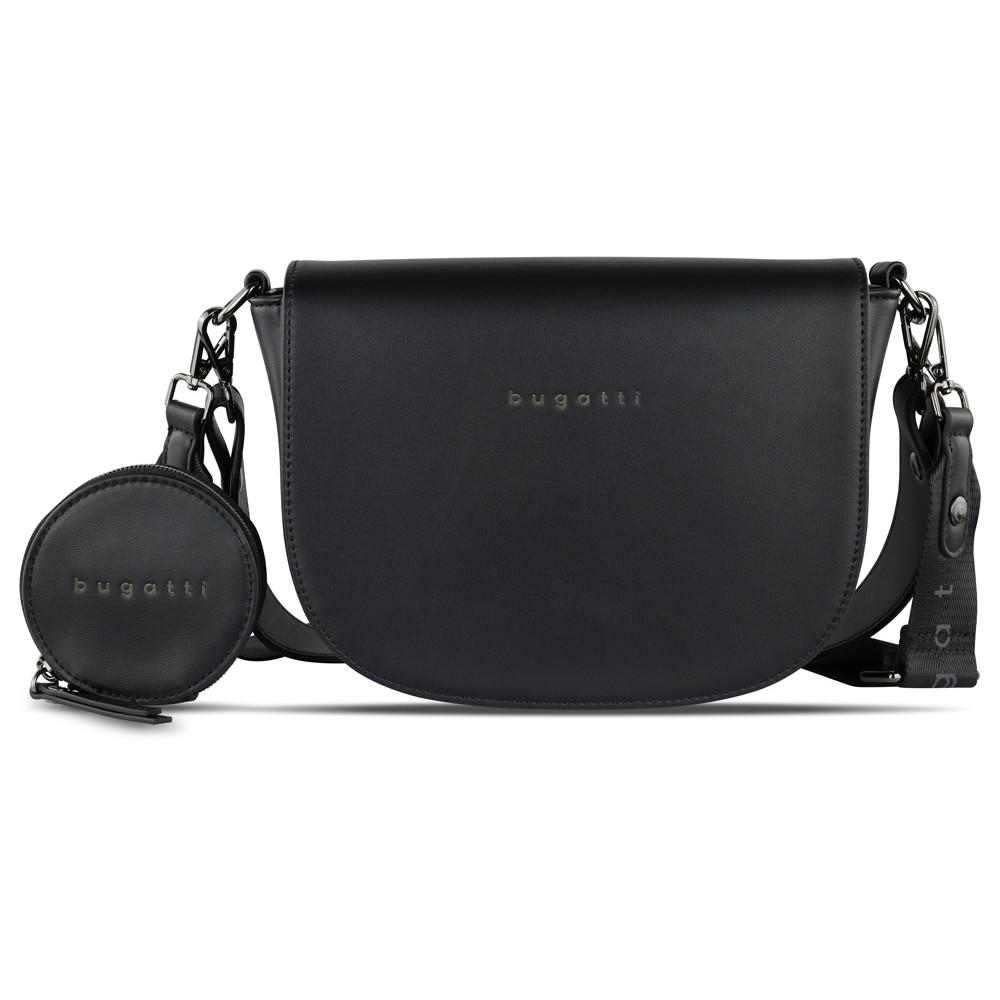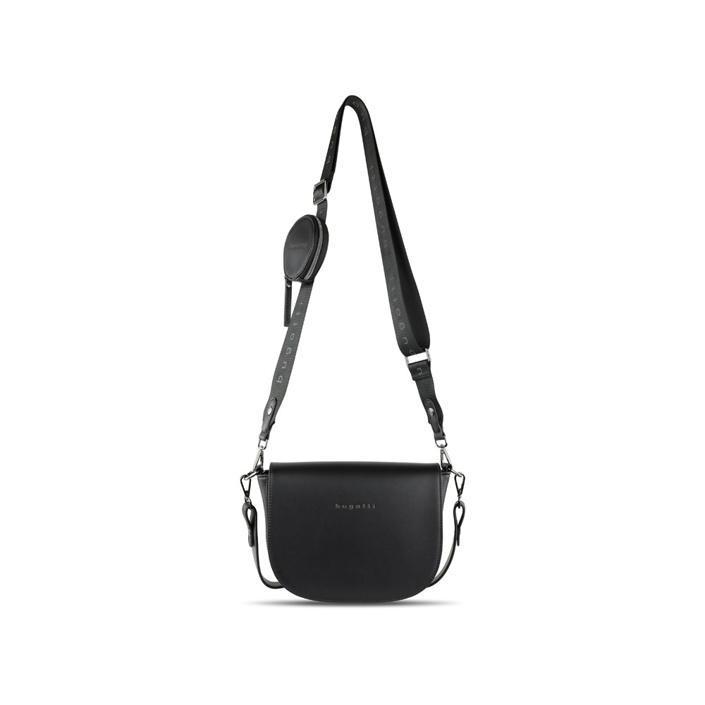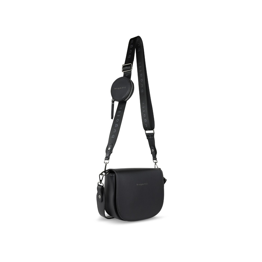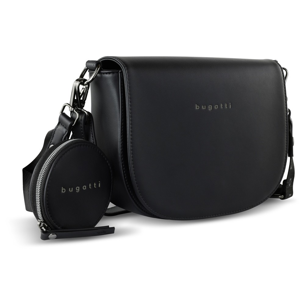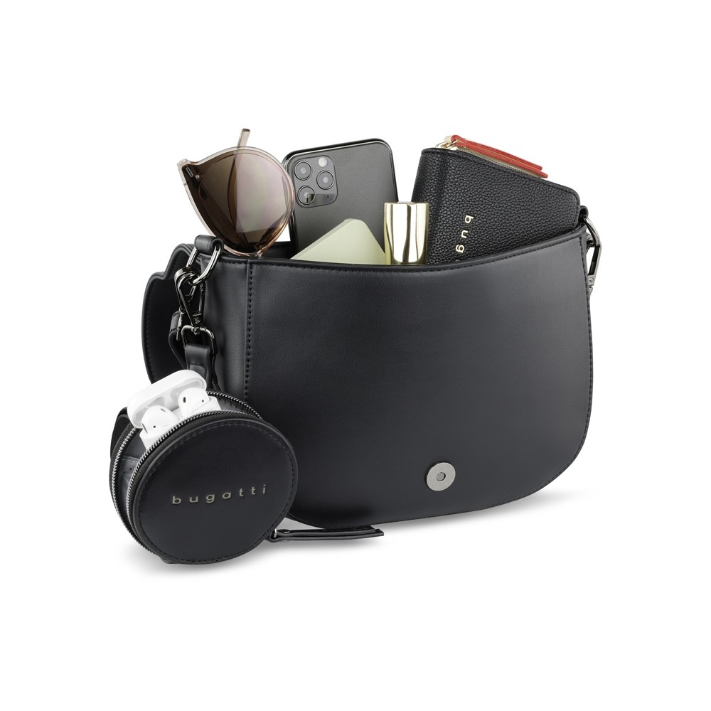 • Сумка наплечная женская BUGATTI АЛМАТА | ALMATA, с кошельком, чёрная, полиуретан, 27х6х18,5 см