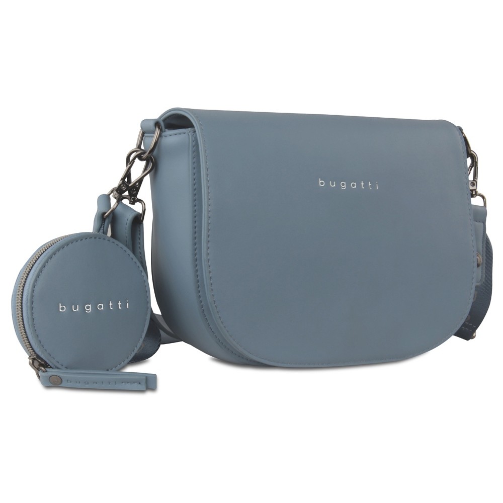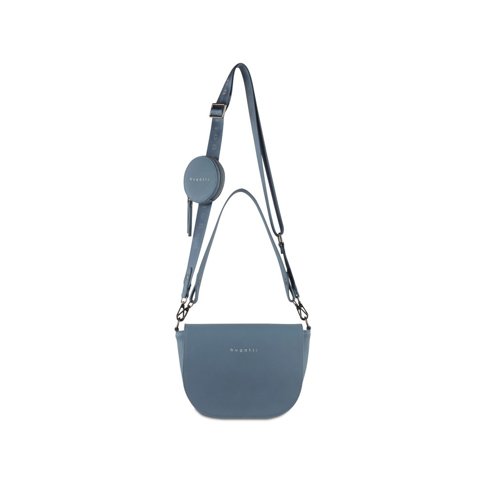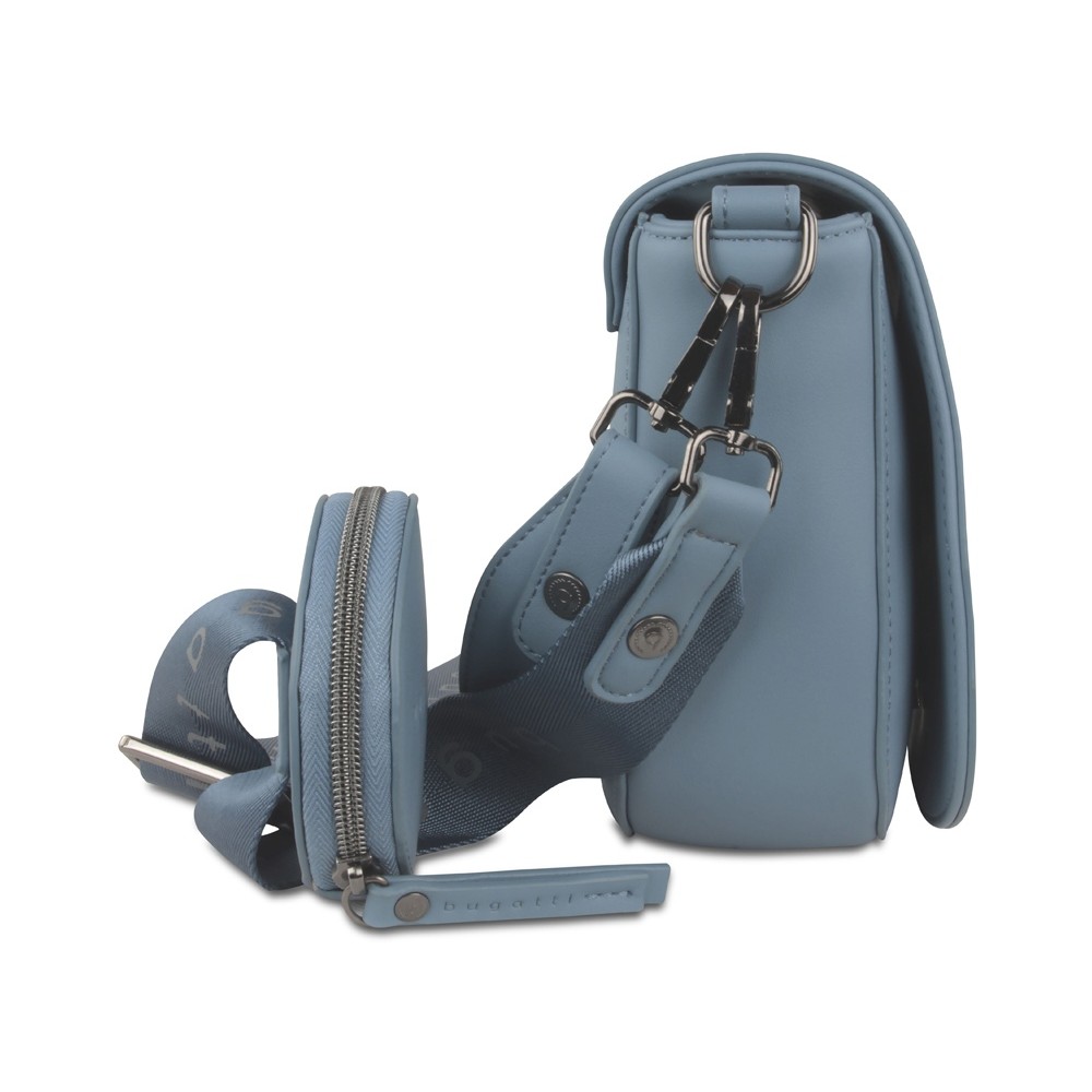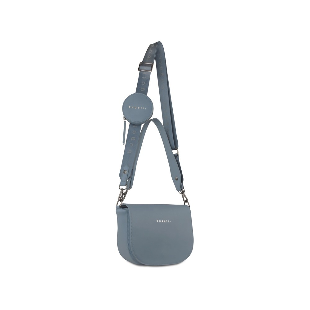• Сумка наплечная женская BUGATTI АЛМАТА | ALMATA, с кошельком, голубая, полиуретан, 27х6х18,5 см