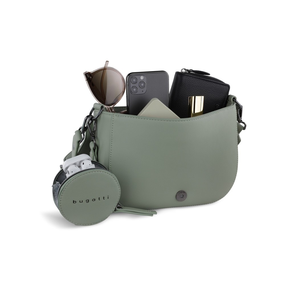 Внешняя организация: съёмный регулируемый плечевой ремень (до 50 см), съёмный регулируемый плечевой ремень (до 140 см) со съёмным кошельком на молнии