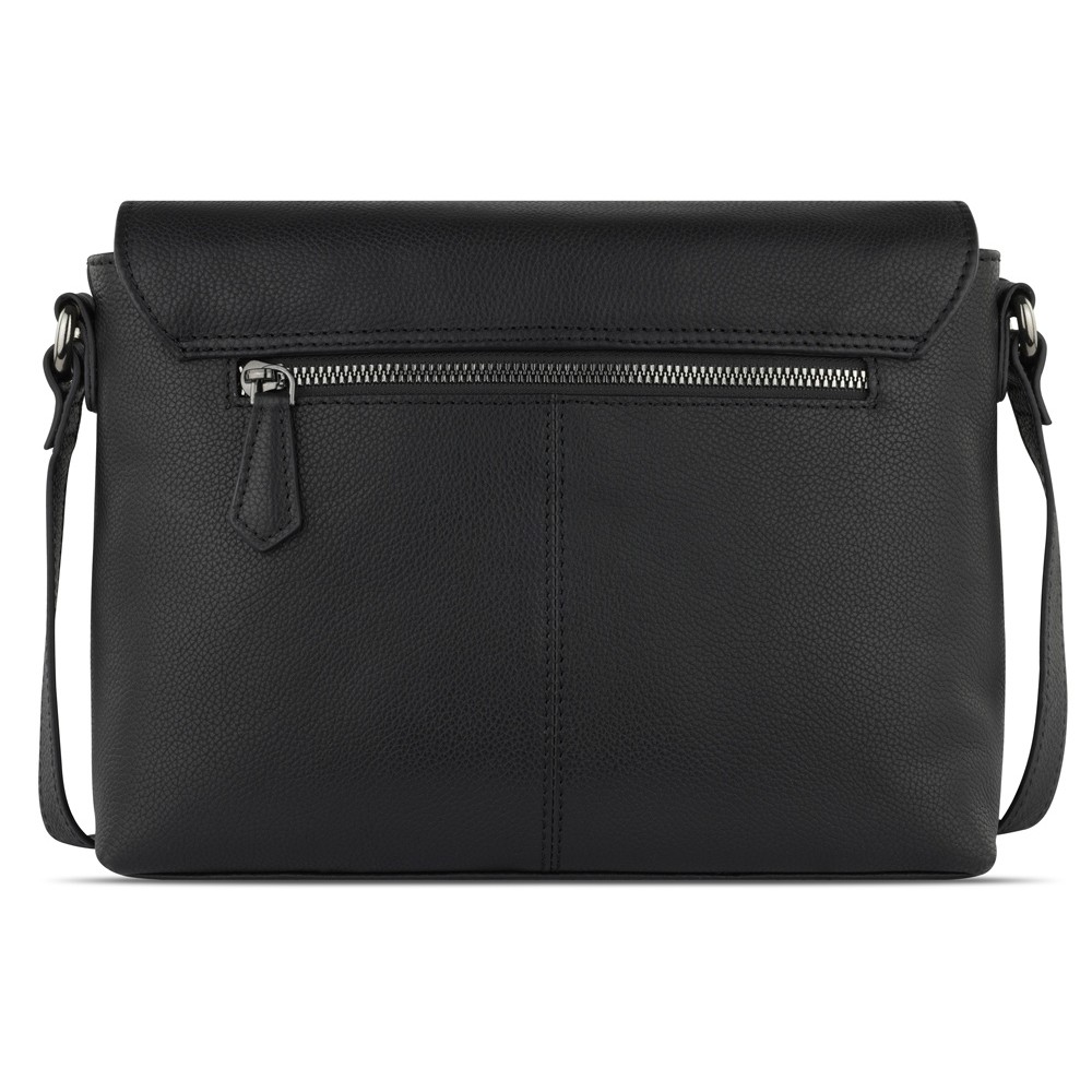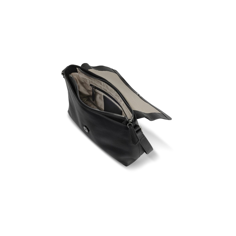 Сумка наплечная женская BUGATTI БЕЛЛА | BELLA, чёрная, воловья кожа/полиэстер, 25х8х20 см