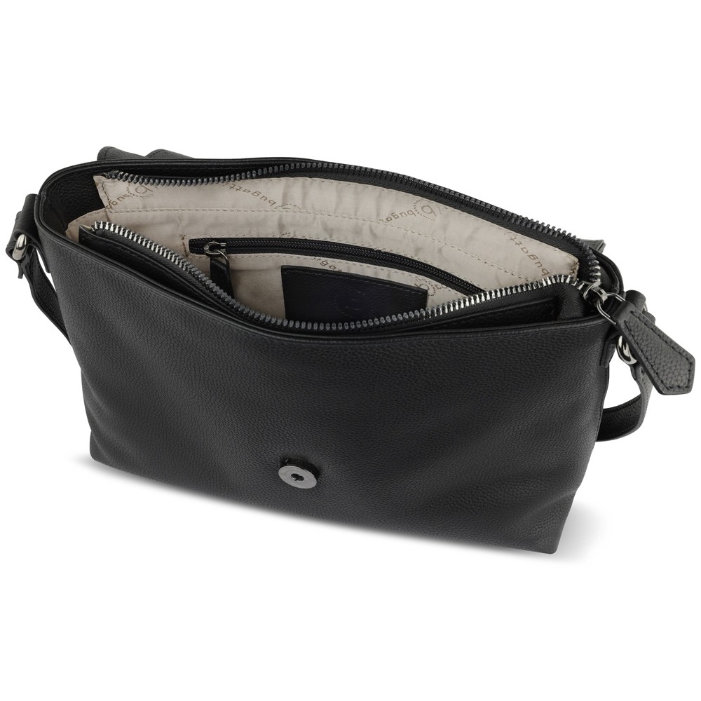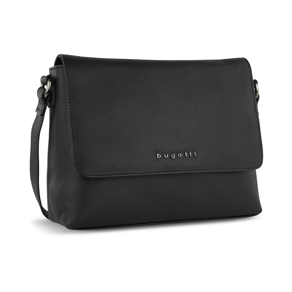 Сумка наплечная женская BUGATTI БЕЛЛА | BELLA, чёрная, воловья кожа/полиэстер, 23х8х17 см