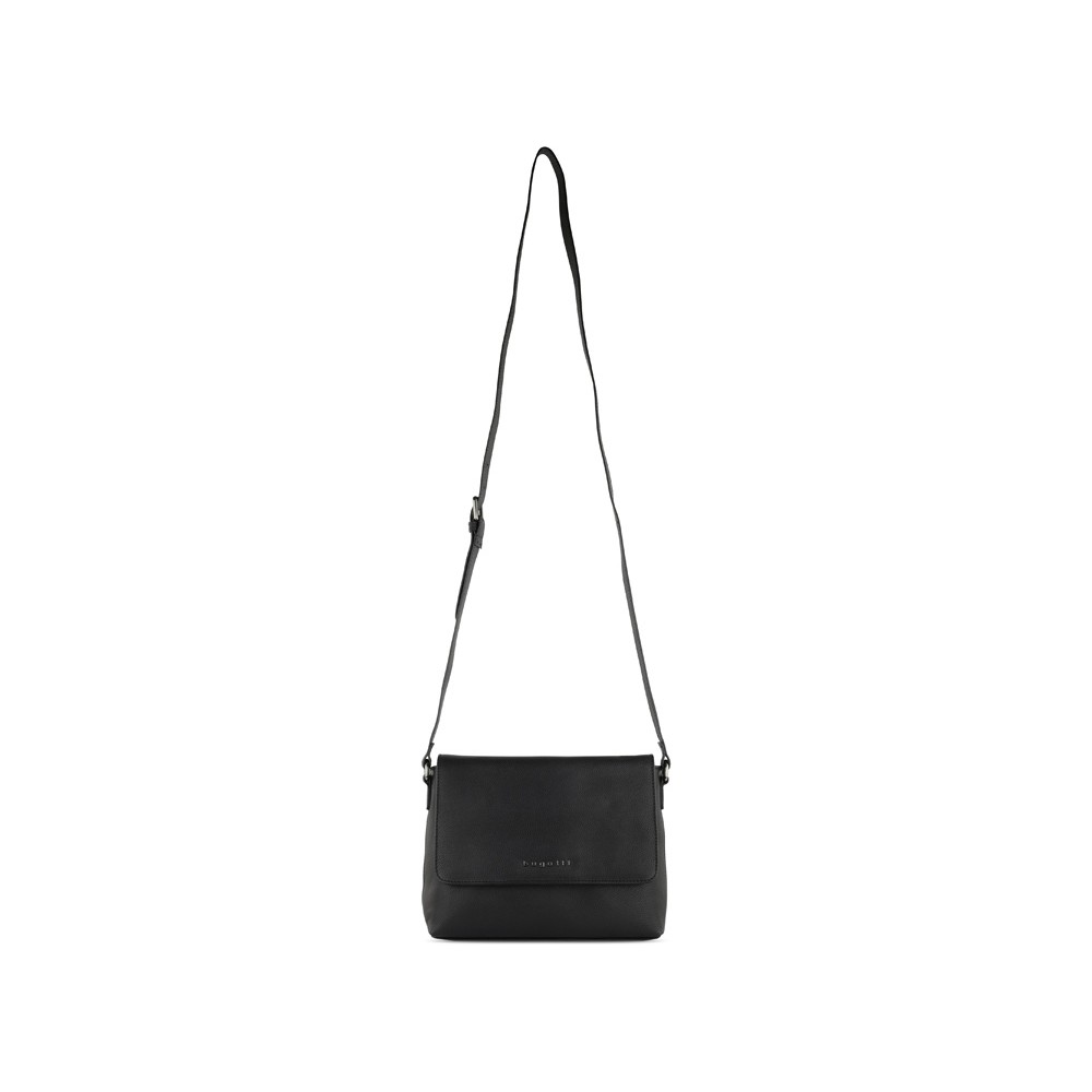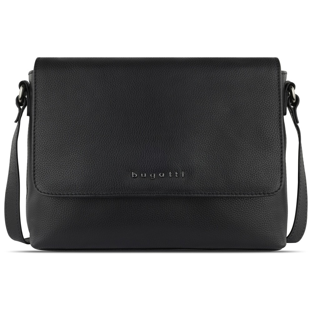 • Сумка наплечная женская BUGATTI БЕЛЛА | BELLA, чёрная, воловья кожа/полиэстер, 25х8х20 см