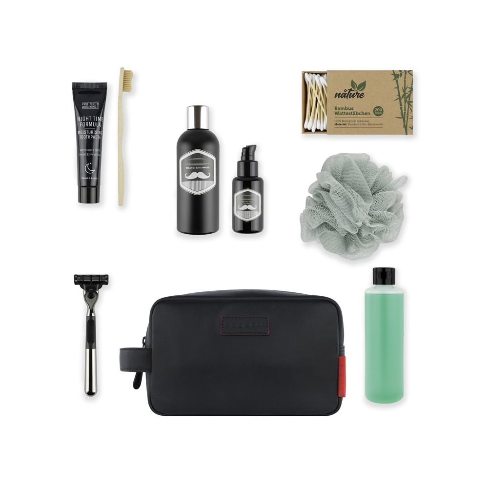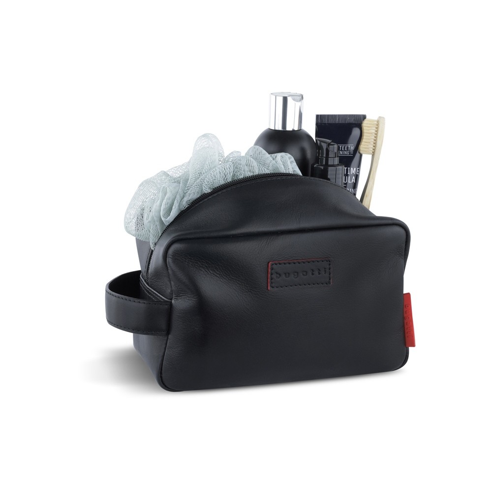 • Несессер дорожный BUGATTI КЛАРК | CLARK, чёрный, воловья кожа/полиэстер, 20х10х13 см, 2,5 л
