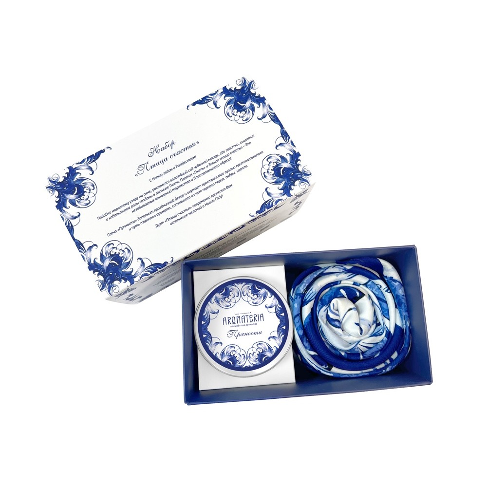 • Набор: платок «Гжель» и свеча «Птица счастья»