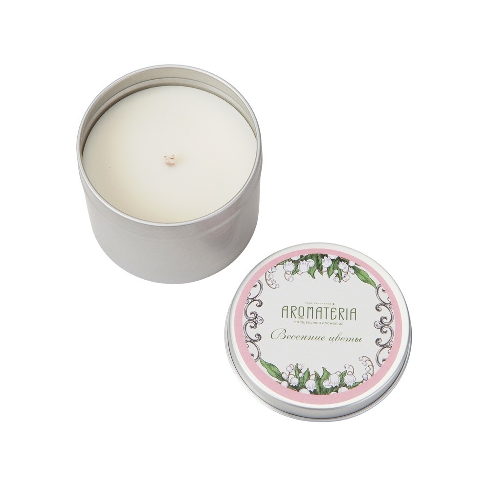 Аромат свечи «Весенние цветы» открывается свежими нотами апельсинового цвета, мимозы и ландыша, завершая флоральный букет аккордами меда и амбры.
