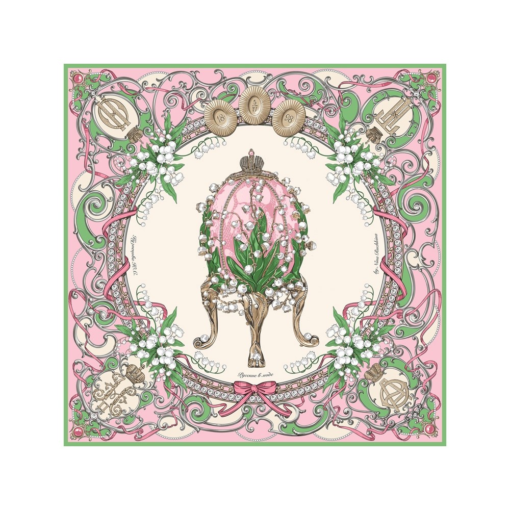 Окутайте себя тонкой дымкой шелка изящного платка «Ландыши» из серии Фаберже. С любовью и трепетом мы постарались передать филигранность и роскошь шедевра ювелирного искусства, взятого за основу композиции, – подарка Николая II императрице Александре Федоровне на Пасху 1898 года.