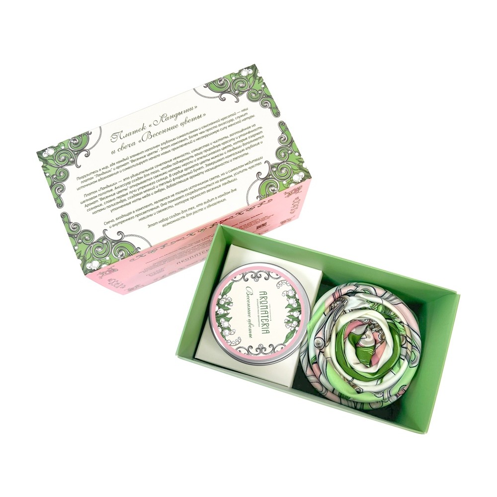 • Набор: платок «Ландыши» и свеча «Весенние цветы»