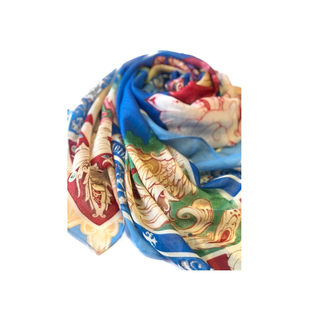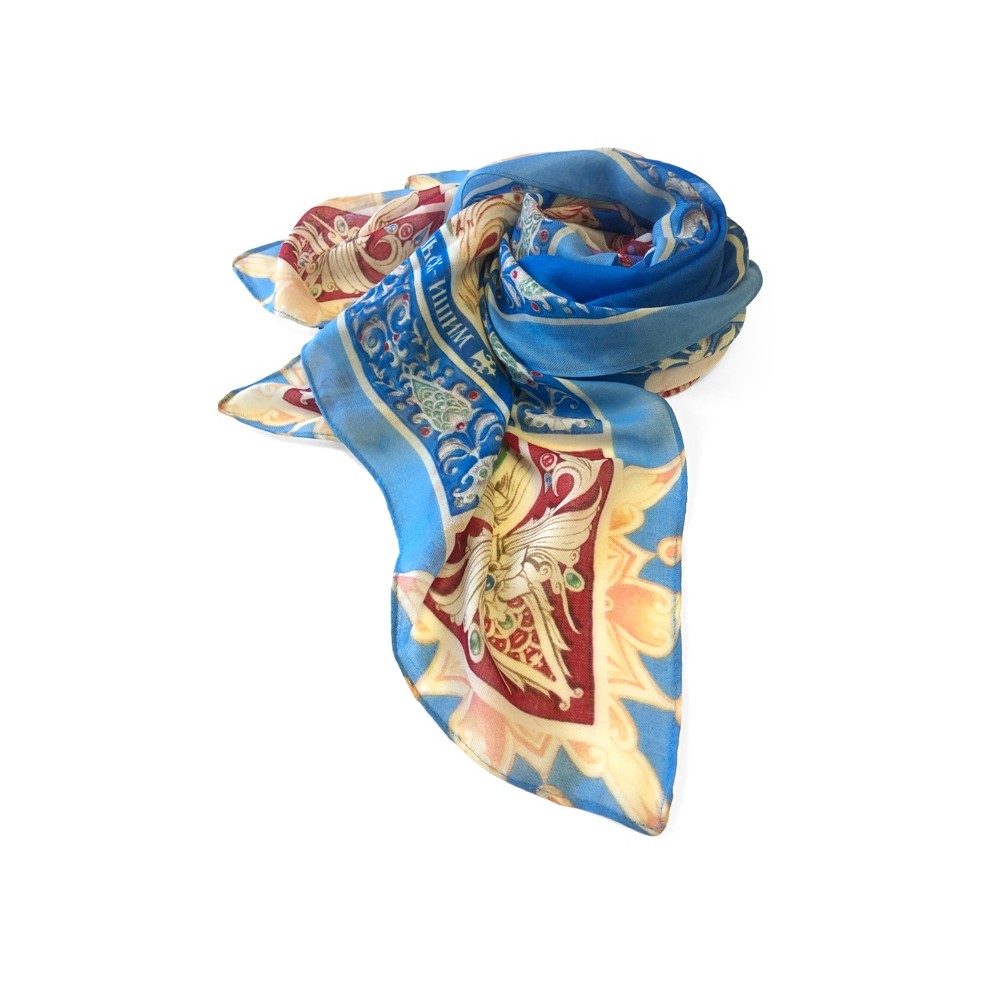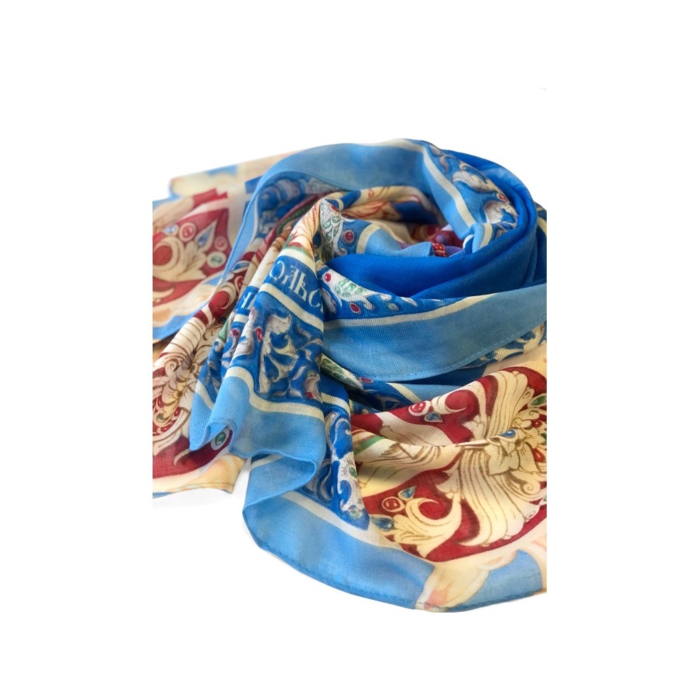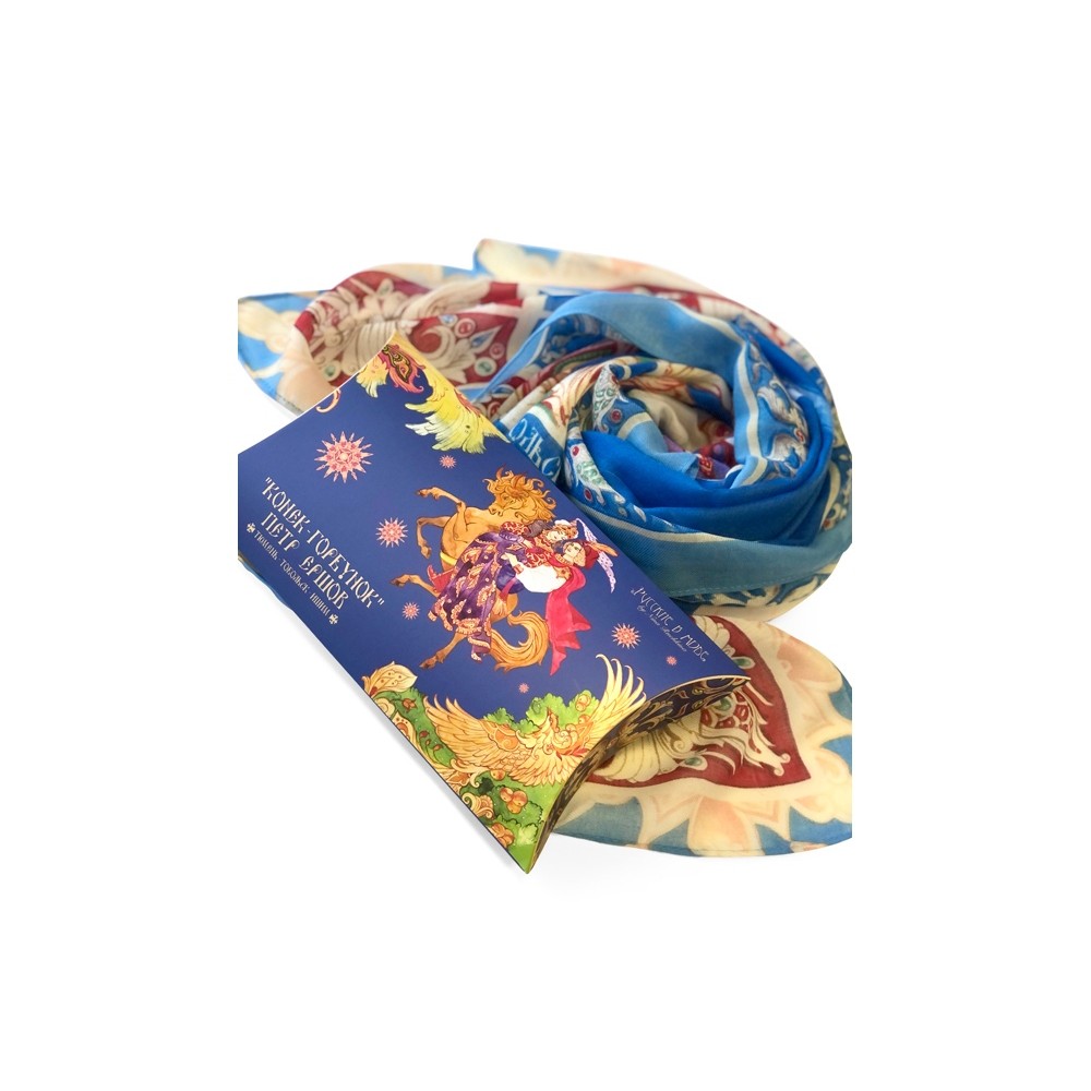 Прочитав сказку юного дарования, сам великий Александр Сергеевич Пушкин сказал: «Этот род сочинений я могу теперь оставить» - и Петр Ершов был принят в круг петербургских писателей.В этом году сказке из золотого фонда русской литературы, переведенной на все языки мира, исполняется 185 лет. Ее яркие краски мы перенесли на шелк и создали платок «Конек-Горбунок». Благодаря тонкой работе дизайнера, со страниц книги, как живые, сошли герои любимой с детства истории: Иван, прекрасная Царь-девица и волшебный Конек-Горбунок. А в роскошных орнаментах сплелись легендарное перо Жар-птицы, Красное Солнышко и Месяц…