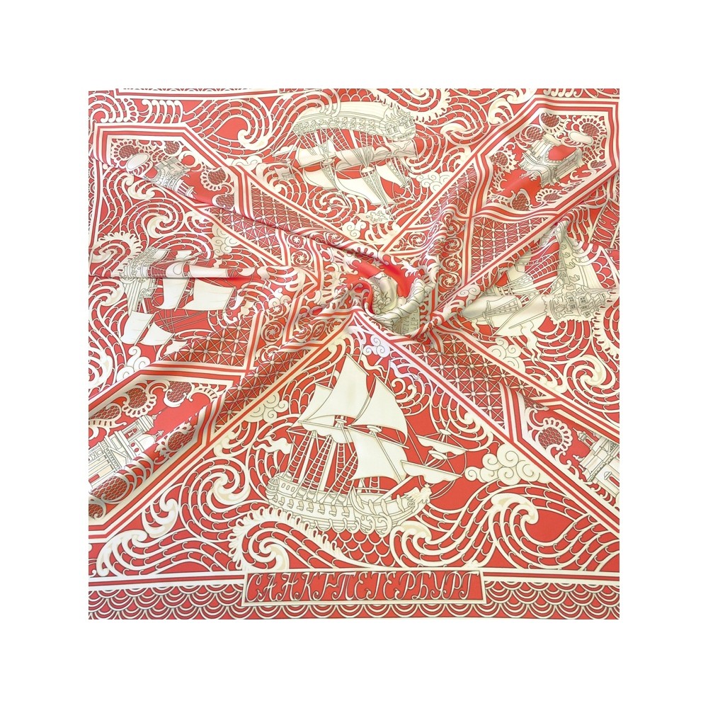 Тематика платка - Петровский Флот. В центре - декоративная резная пластина в пышном обрамлении с профилем великого русского самодержца Петра I.