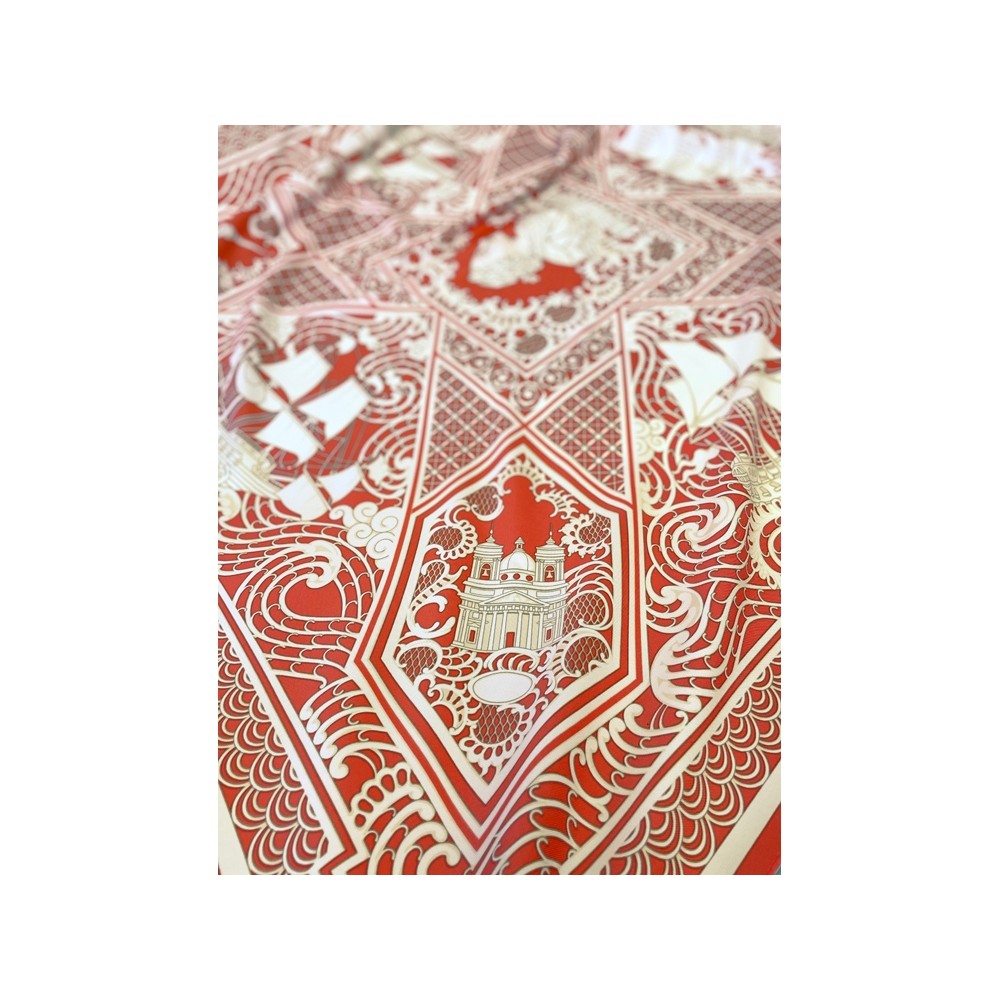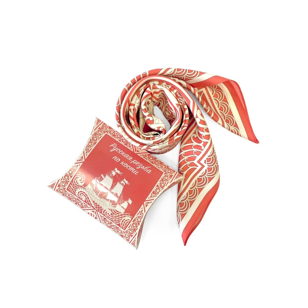Платок «Русская резьба по кости» совмещает в себе традиции виртуозных мастеров и отвечает запросам нашего времени. В изысканный и модный аксессуар вплетена история, а сам по себе он является модным акцентом в образе современной девушки.
