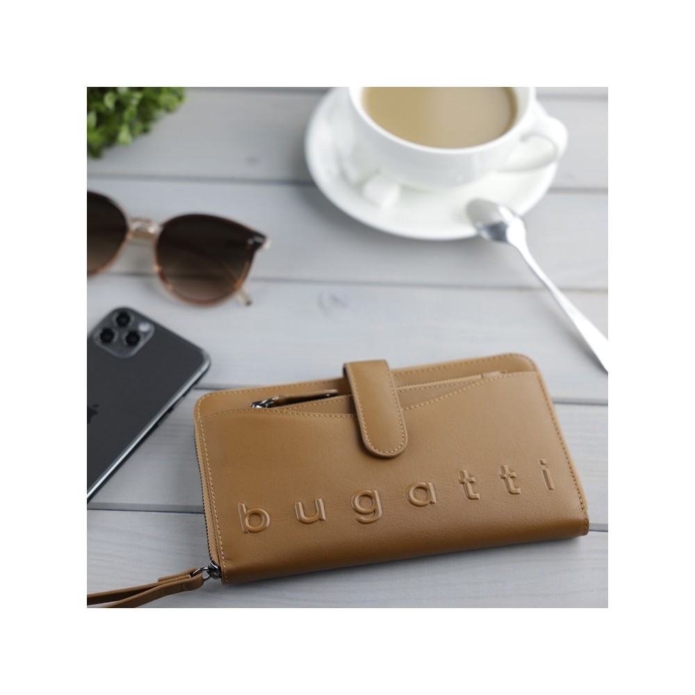 • Кошелёк женский BUGATTI ДАФНА | DAPHNE с ключницей, коньячный цвет, воловья кожа/полиэстер, 19х3х11 см
