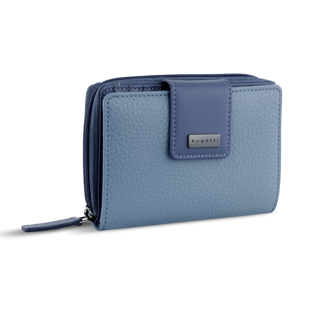• Кошелёк женский BUGATTI СИНА | SINA, голубой, воловья кожа/полиэстер, 13,7х3х9,5 см