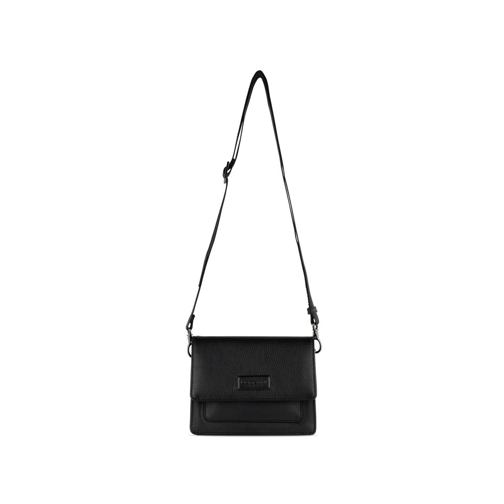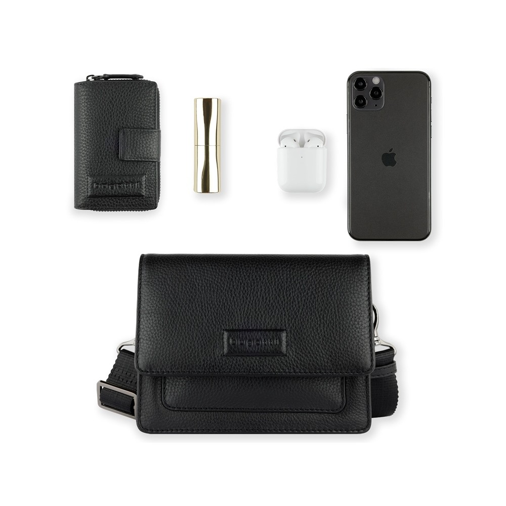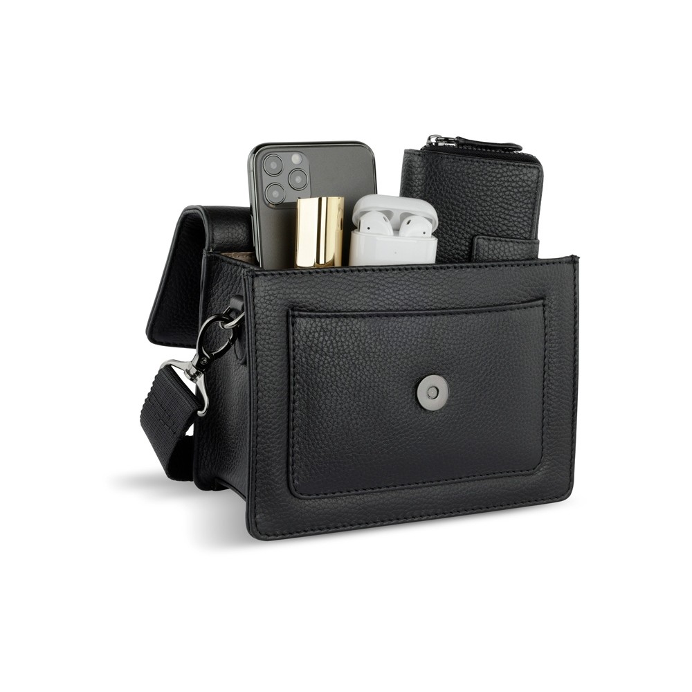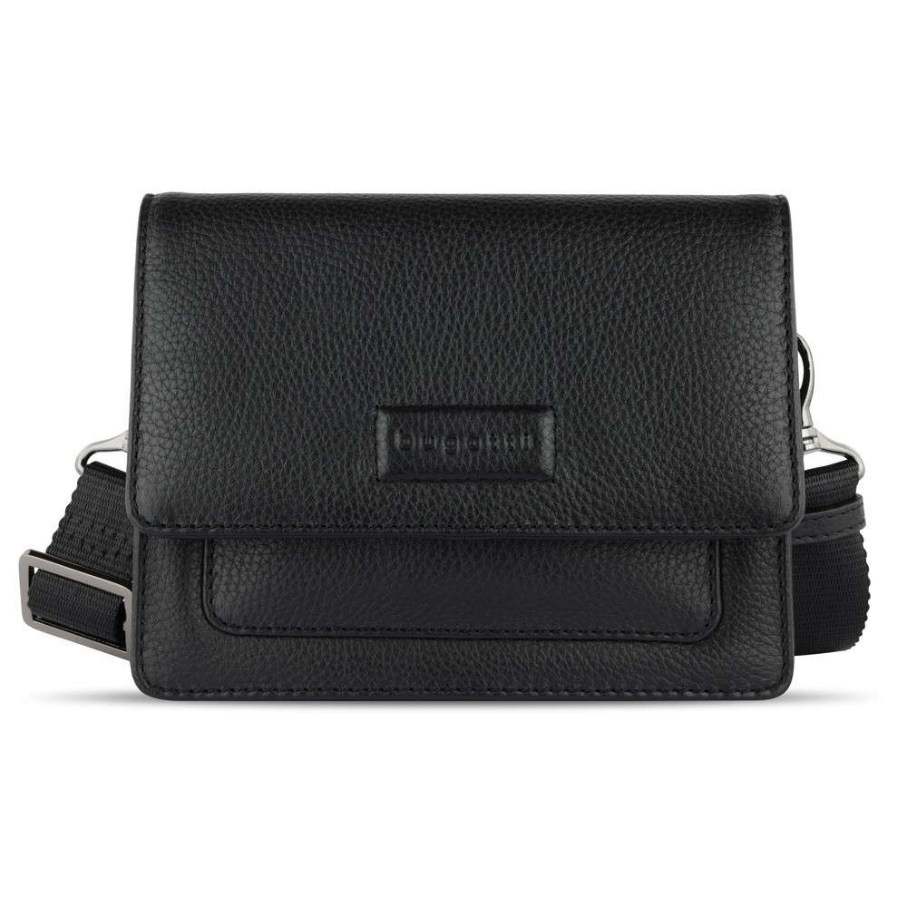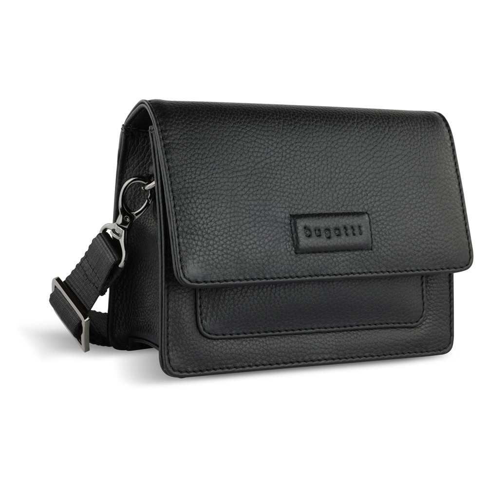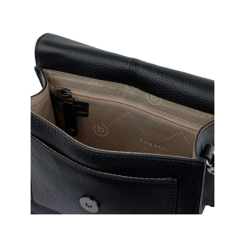 • Сумка через плечо женская BUGATTI Elsa, чёрная, воловья кожа/полиэстер, 18,5х8,5х14,5 см