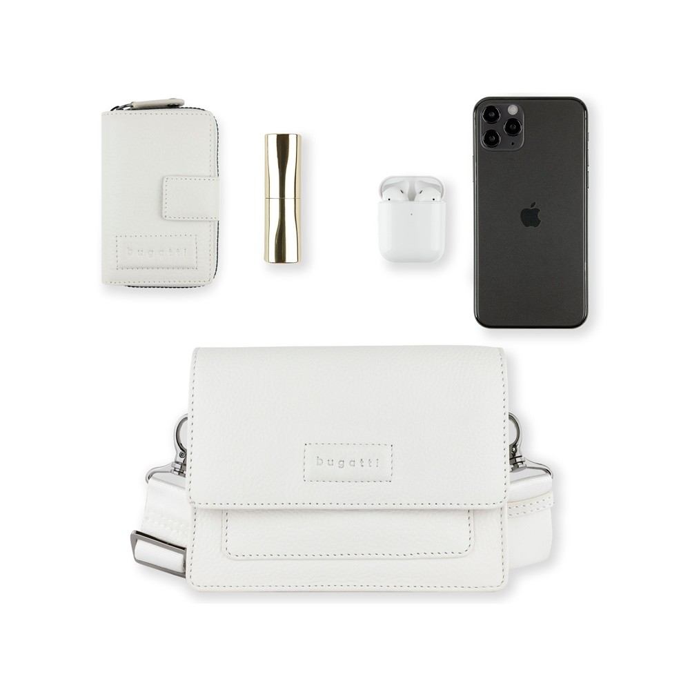 • Сумка через плечо женская BUGATTI ЭЛЬЗА | ELSA, белая, воловья кожа/полиэстер, 18,5х8,5х14,5 см