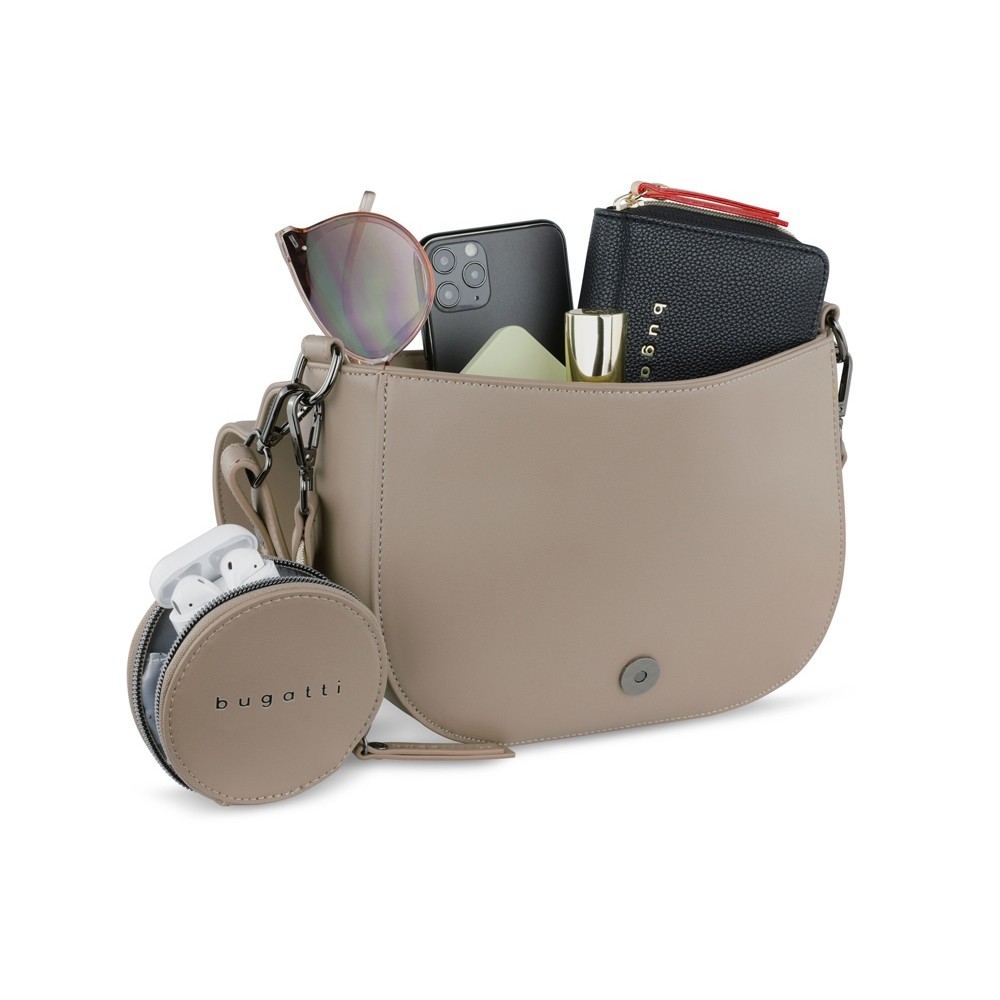 • Сумка наплечная женская BUGATTI АЛМАТА | ALMATA, с кошельком, песочная, полиуретан, 27х6х18,5 см