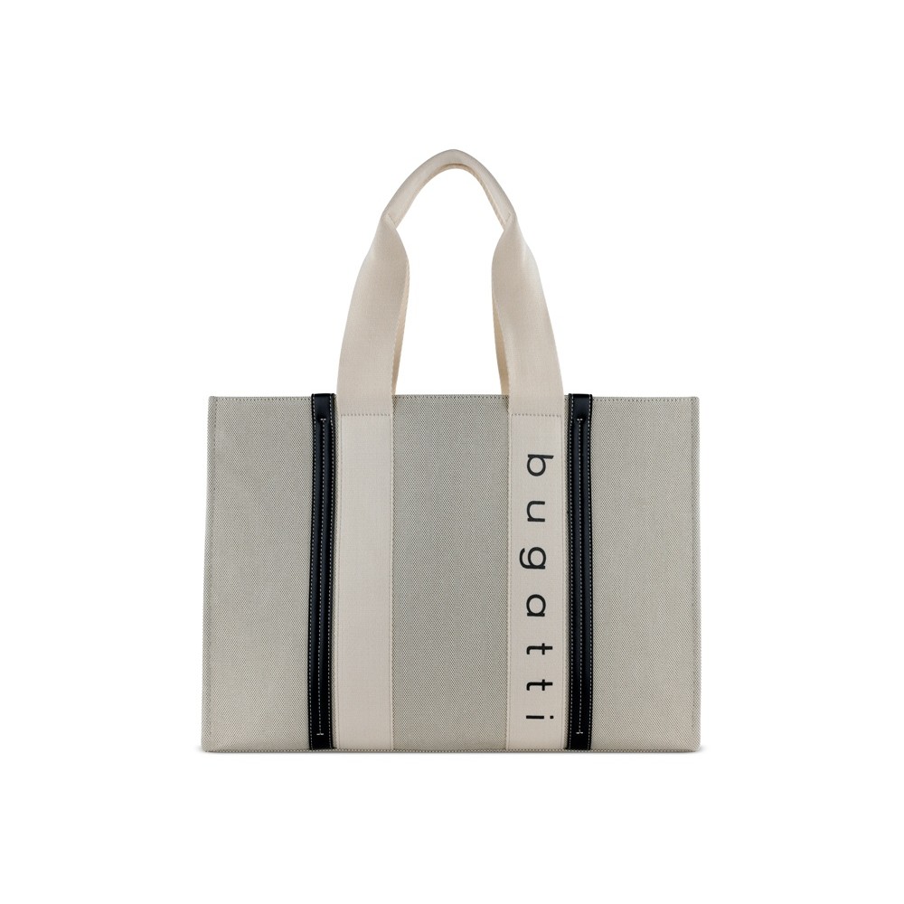 • Сумка-тоут женская BUGATTI АМБРА | AMBRA, бежево-черный цвет, хлопок/полиэстер, 45х14х32 см