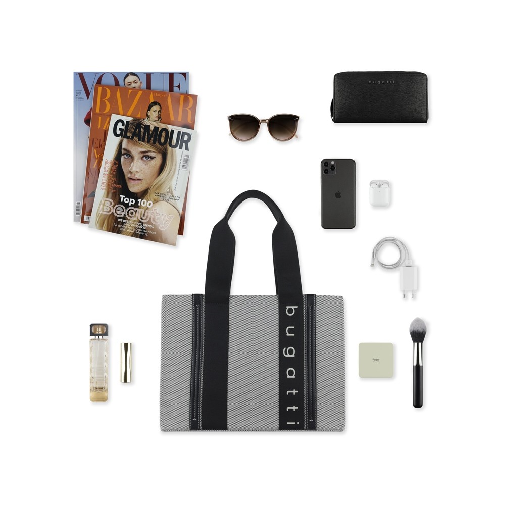Сумка-тоут женская BUGATTI АМБРА | AMBRA, серо-черный цвет, хлопок/полиэстер, 36,5х19х27 см