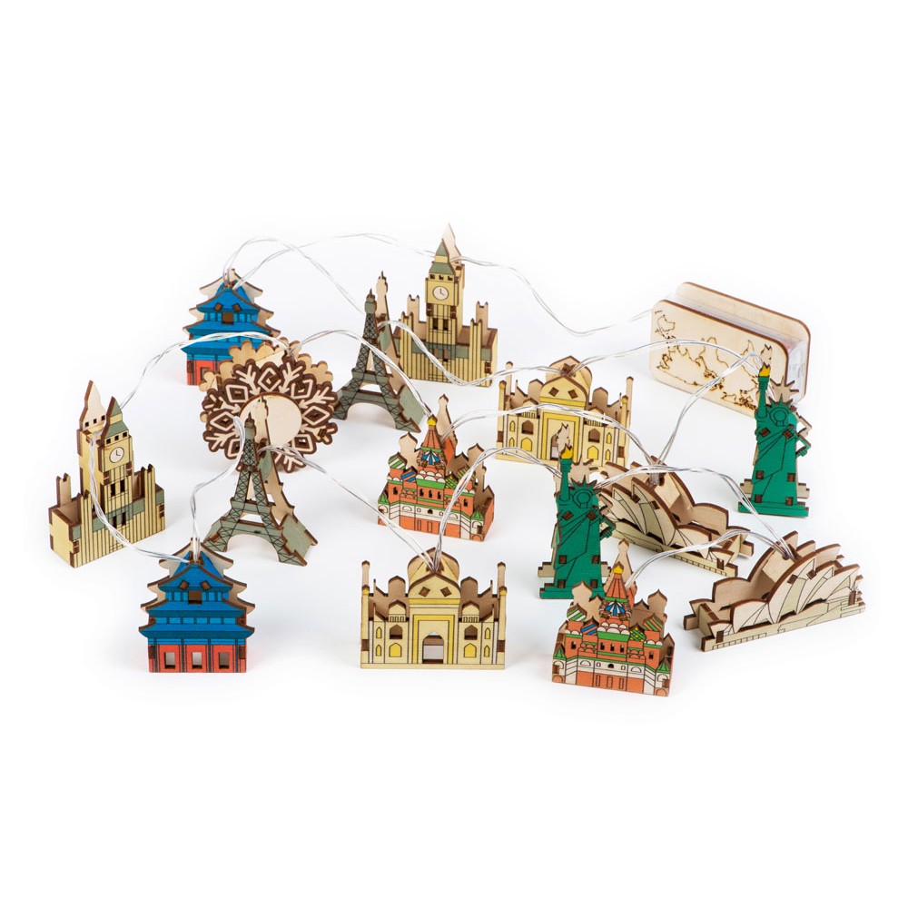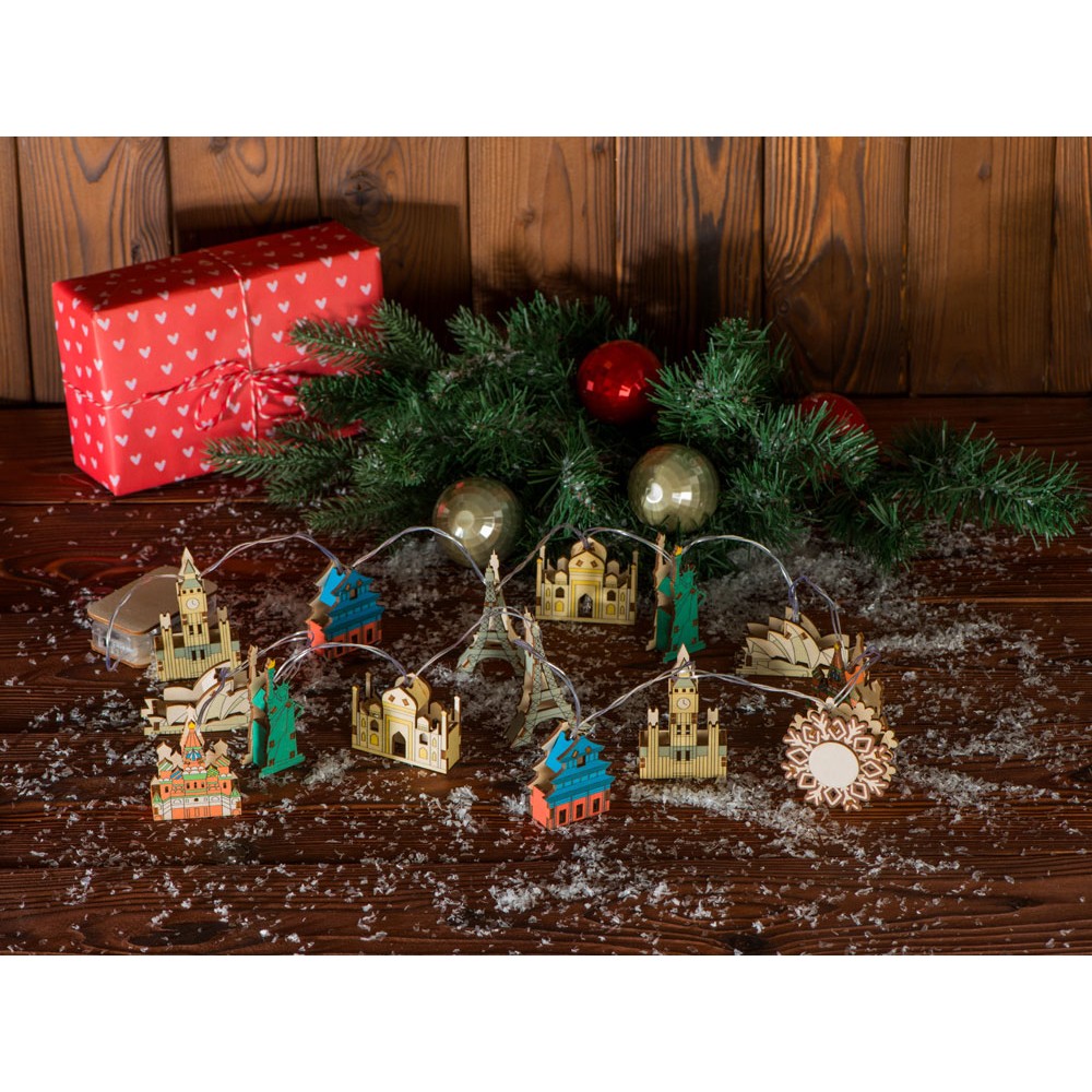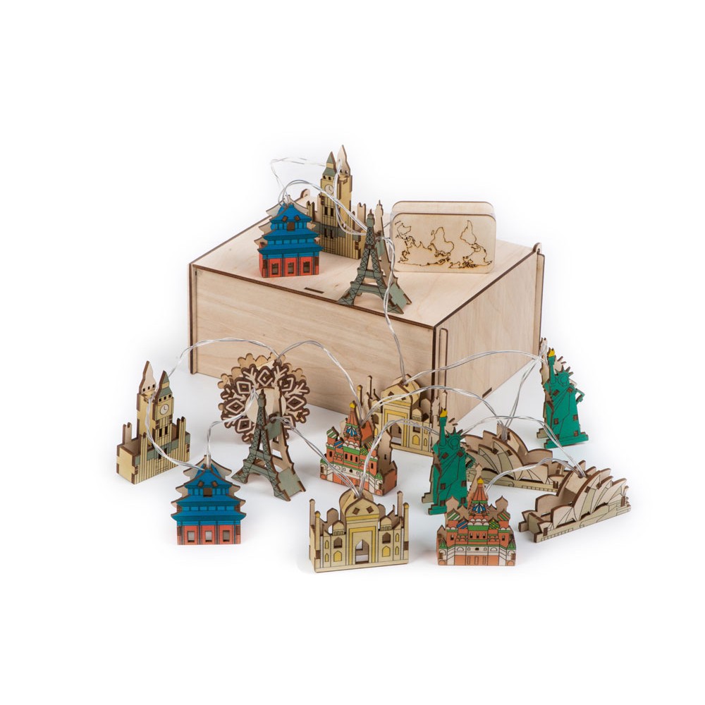 Ёлочная гирлянда с лампами в подарочной коробке «Достопримечательности мира»