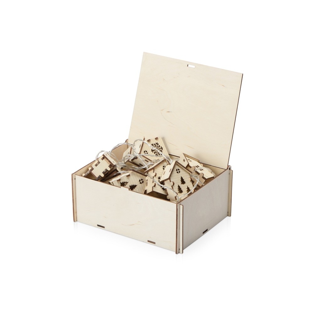 • Елочная гирлянда с лампочками "Зимняя сказка" деревянная + деревянная коробка с наполнителем-стружкой "Ларь"