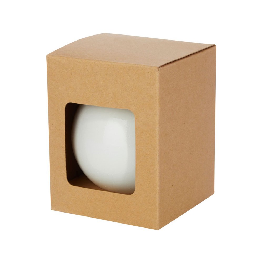 Елочная игрушка с блестящей отделкой, круглой подвеской и шнурком длиной 5,5 см. Индивидуальная коробка из крафт-бумаги с окном спереди для просмотра украшения.