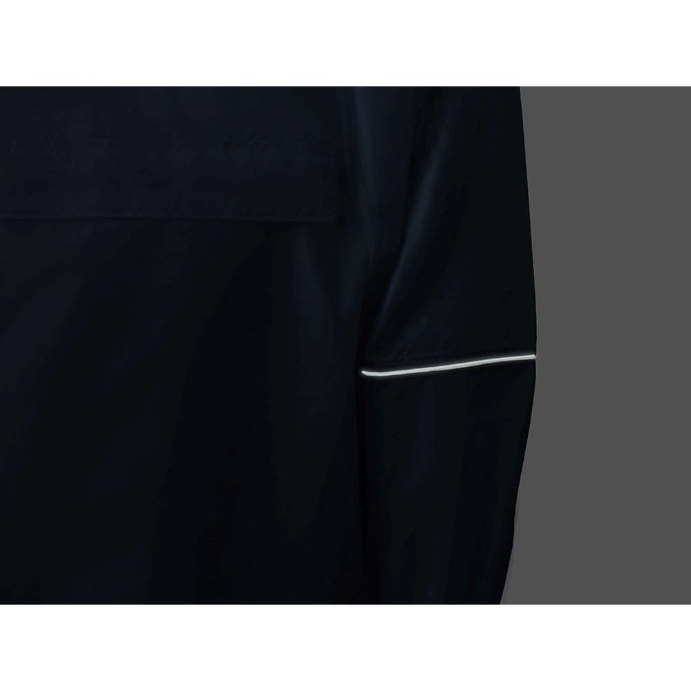 Швы капюшона и рукавов отделаны светоотражающим кантом, который делает человека заметным даже в темное время суток. Для комфортной посадки — затягивающийся на шнурок капюшон с фиксатором и манжеты на резинке.