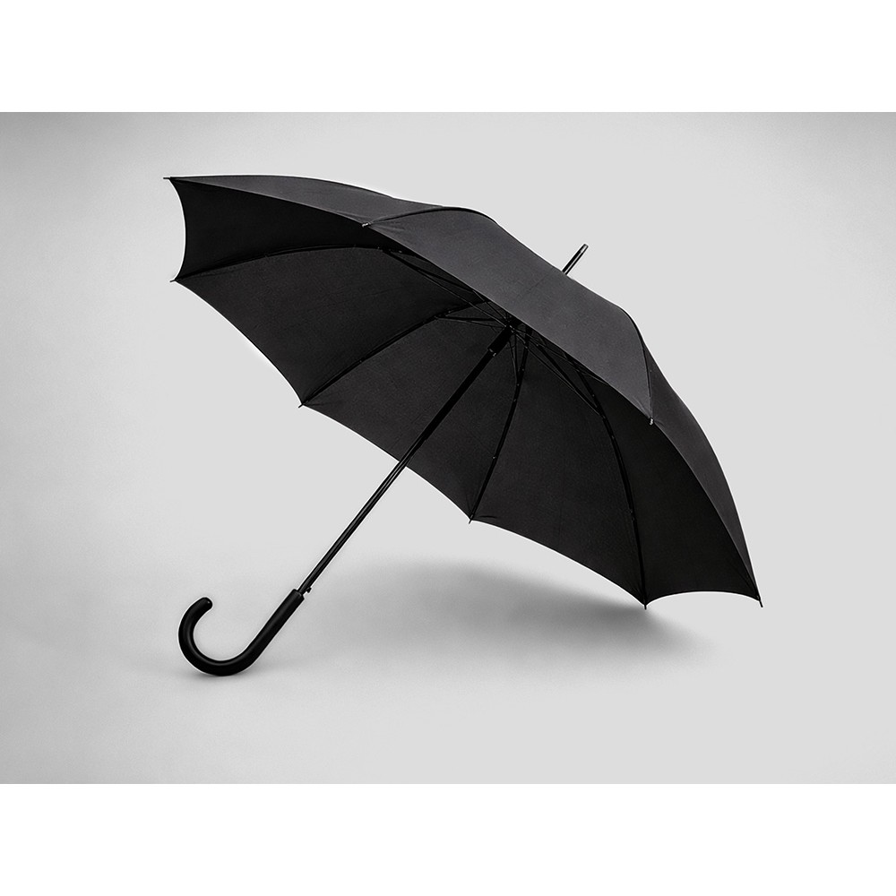 Классический зонт-трость имеет купол из эпонжа плотностью 190T. Металлическая ось дополнена прочными и легкими спицами из файбергласса.
