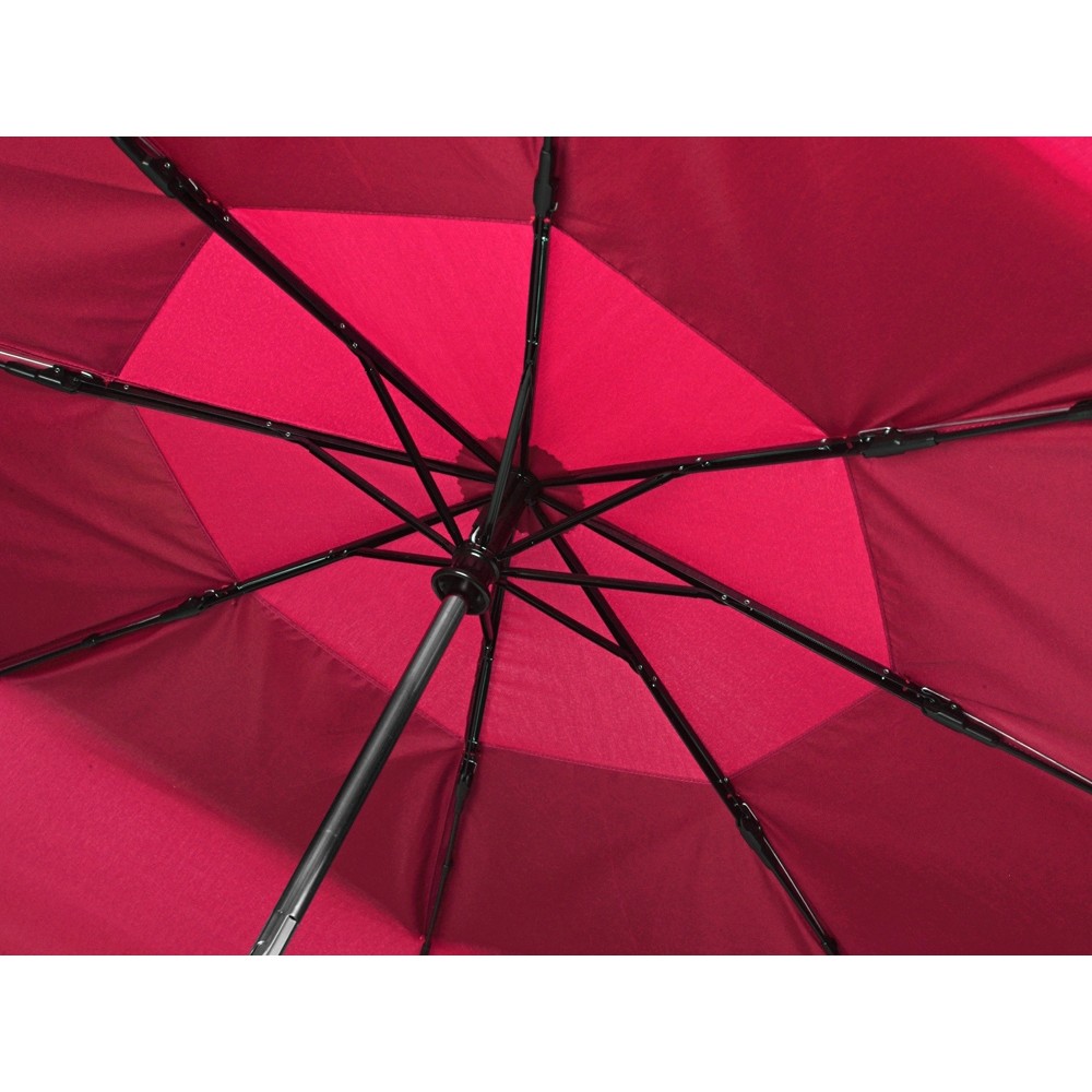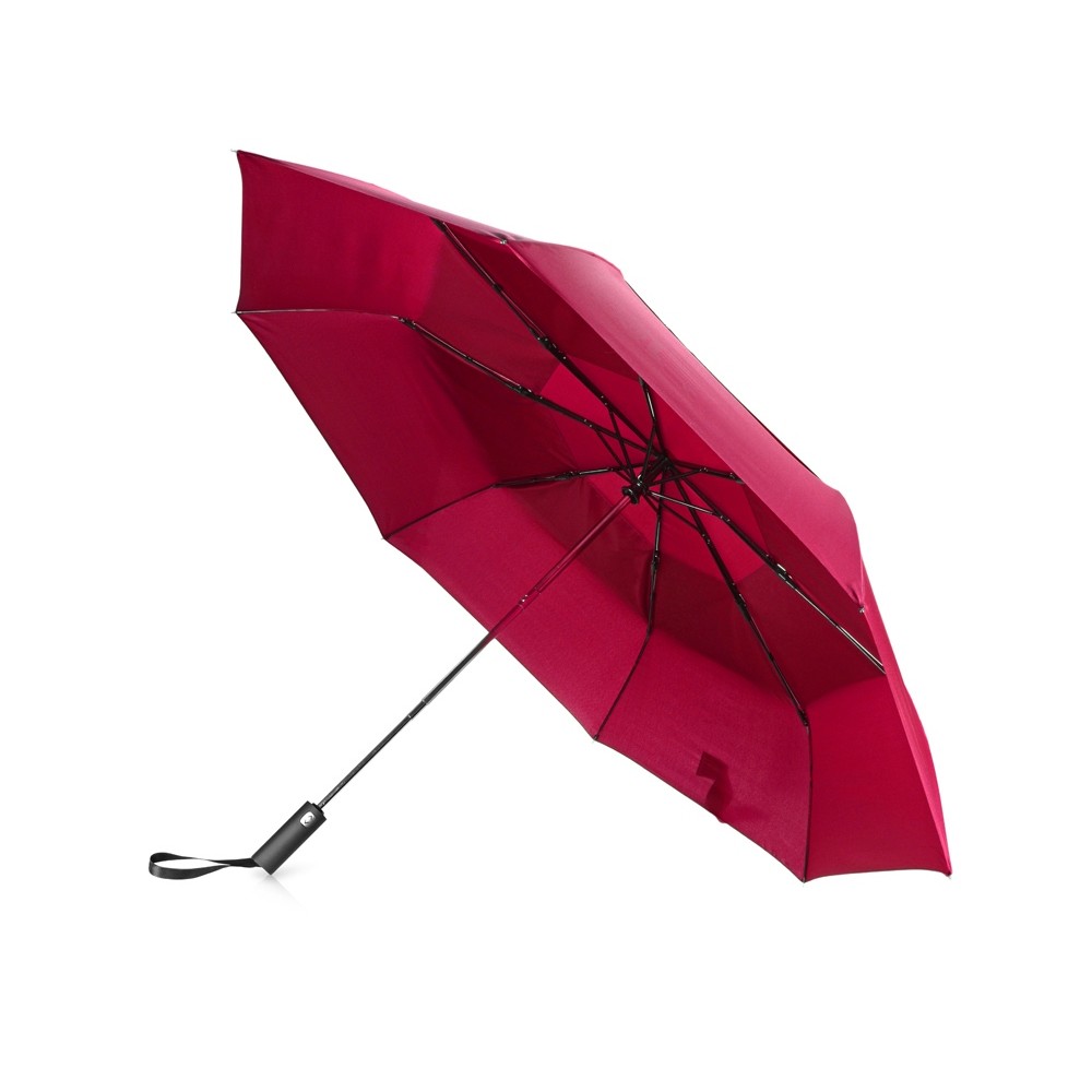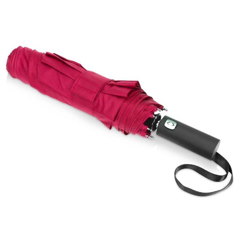 Купол этого складного зонта-автомата состоит из двух полотен и имеет большой диаметр 127 см. Прочный каркас и спицы из стекловолокна устоят при порывах ветра. Благодаря этому зонт служит надежным укрытием в самый сильный дождь. Закрывается в 3 сложения. Ручка обработана мягким покрытием soft-touch. Широкий хлястик для удобства персонализации.