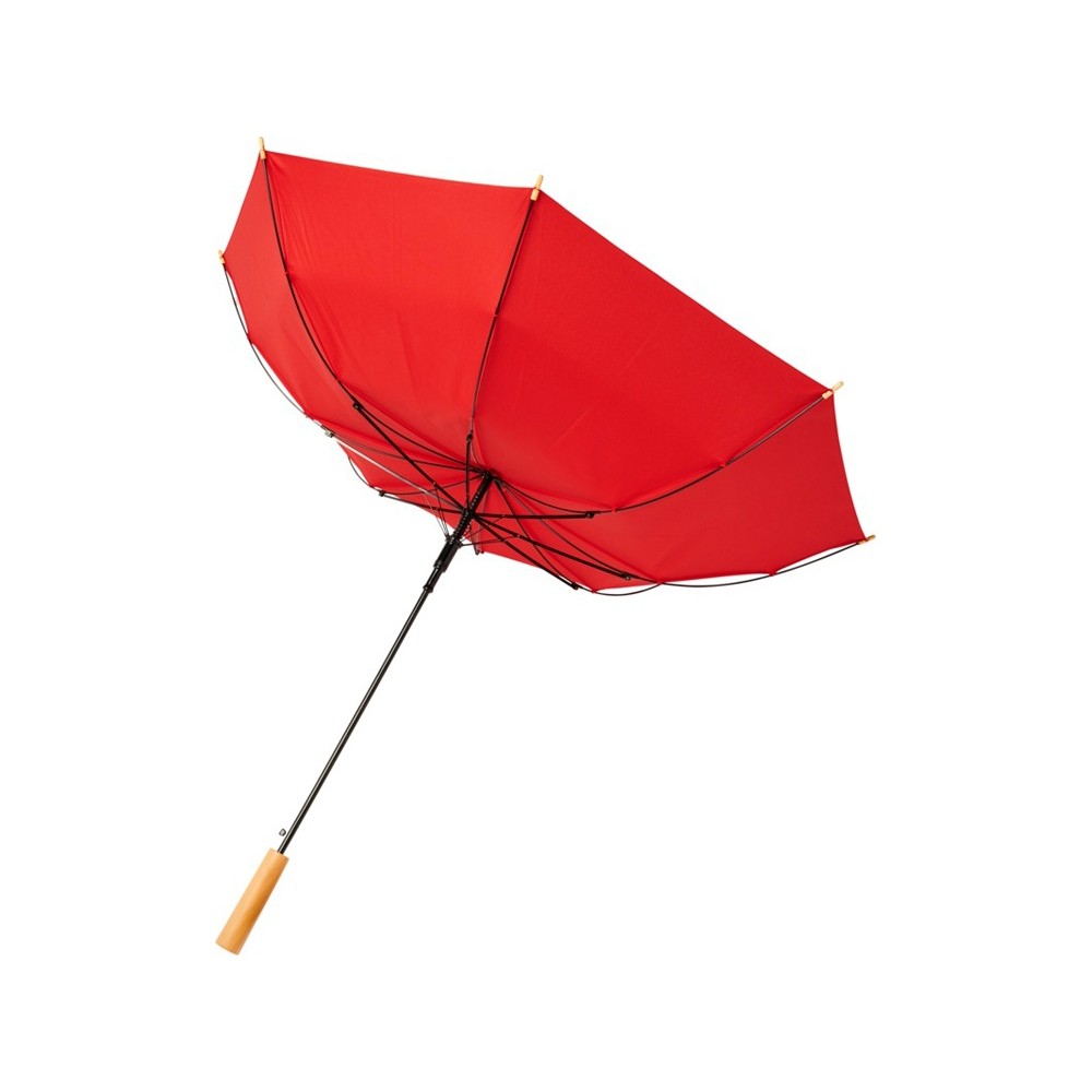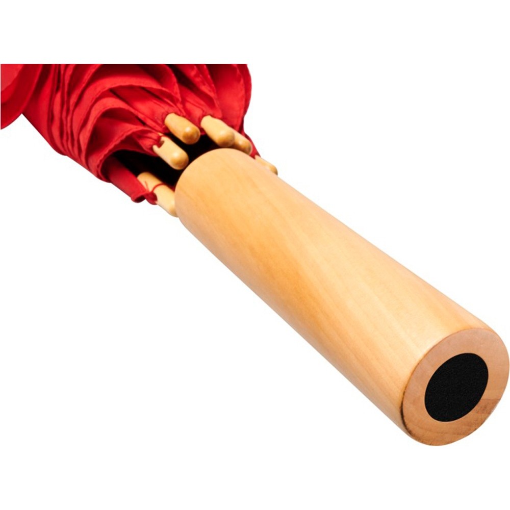 Полуавтоматический зонт с куполом из эпонж полиэстера и переработанного ПЭТ-пластика. Прочный металлический стержень, высококачественная рама со спицами из стекловолокна, обеспечивающая гибкость в ветреную погоду. Сочетание деревянной ручки, кончиков спиц и купола из эпонж полиэстера и переработанного ПЭТ-пластика обеспечивает надежность зонта.