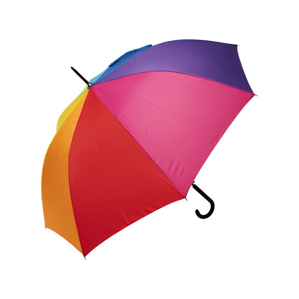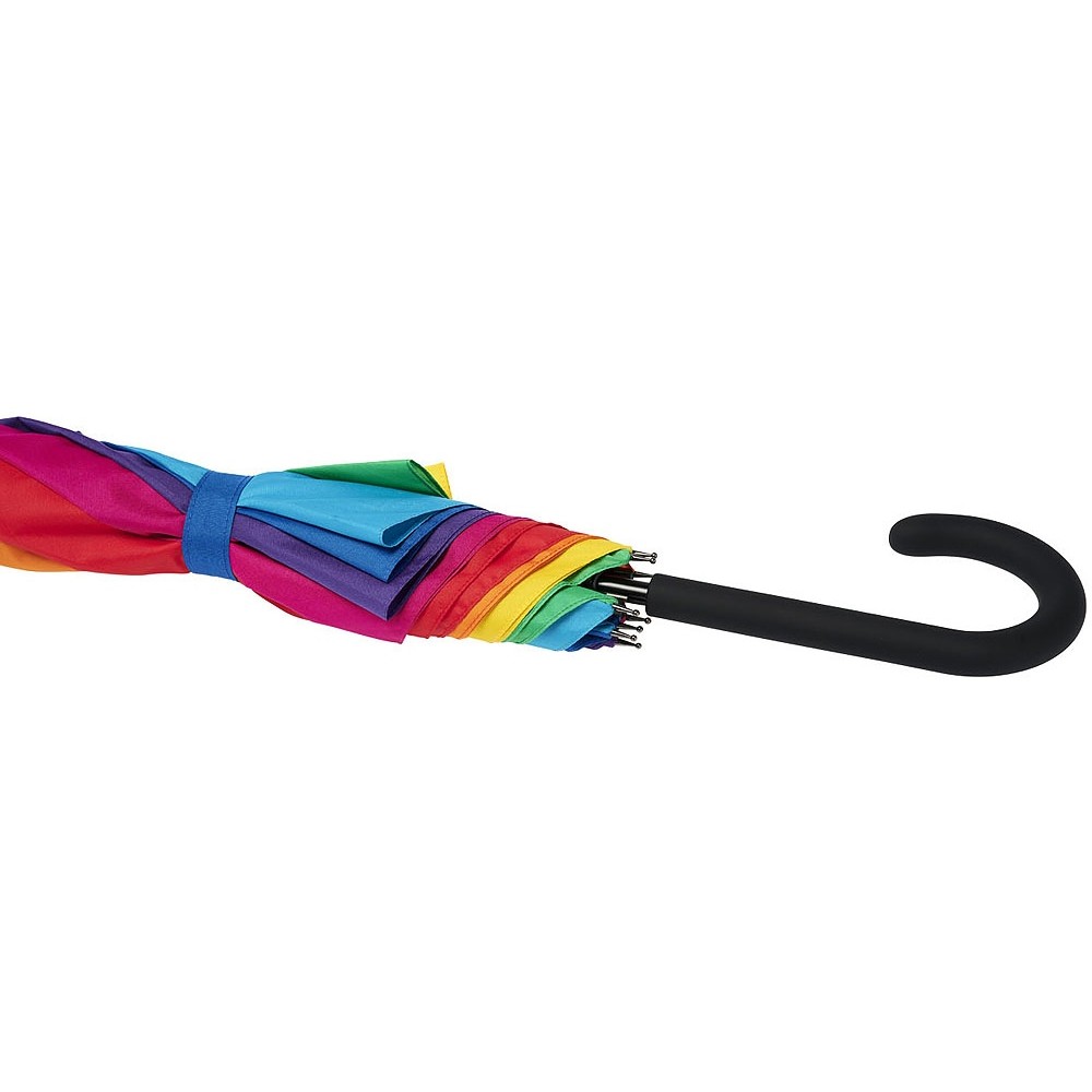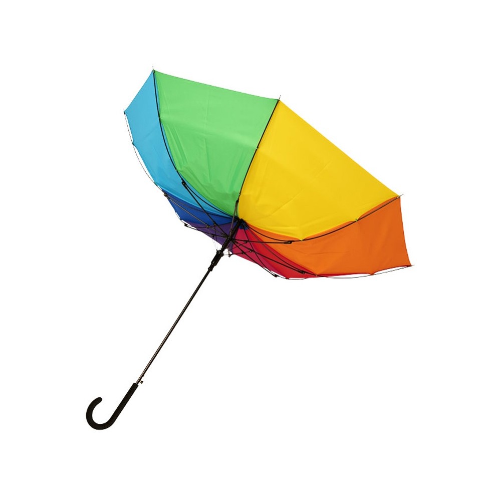 23-дюймовый ветрозащитный полуавтоматический зонт Sarah. Зонт с куполом из эпонж полиэстера, раскрашенный в цвета радуги. Прочный металлический стержень, высококачественная цельная рама из стекловолокна, обеспечивающая максимальную гибкость в ветреную погоду. Выгнутая ручка с мягким матовым покрытием, никелированные верхняя втулка и кончики спиц. Большая область для декорирования на каждой из панелей купола позволяет предложить различные креативные решения для логотипа. Эпонж полиэстер.