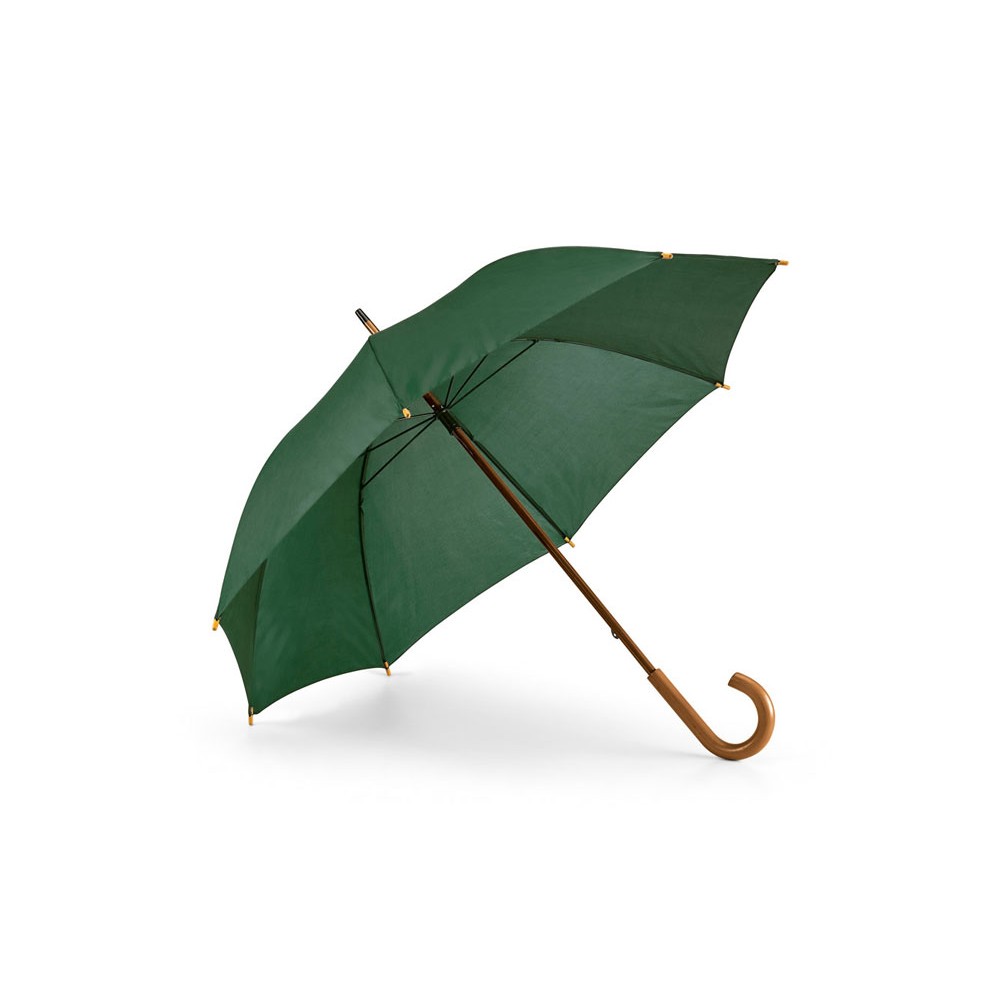 Зонт-трость из полиэстера плотностью 190Т с ручкой из дерева. Вид нанесения, рекомендуемый поставщиком: трансфер, текстильный принтер