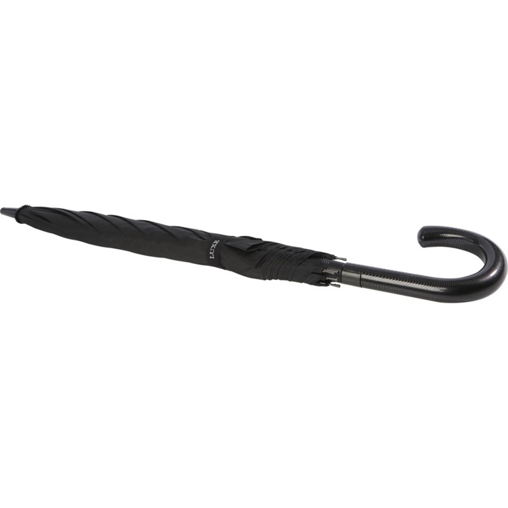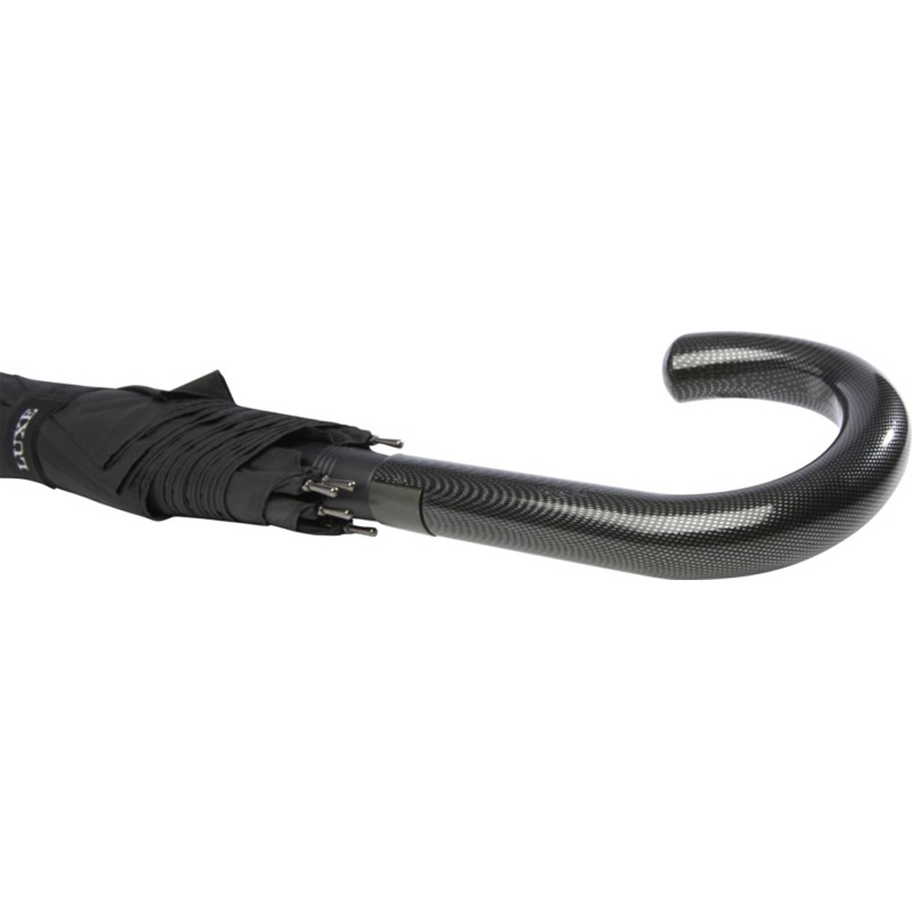 Зонт с механизмом автоматического открытия, куполом из полиэстера (эпонж) и прочным металлическим штоком с черным покрытием. Высококачественная цельная рама из стекловолокна обеспечивает в ветреную погоду максимальную гибкость. Изогнутая ручка с отделкой карбонового цвета и черными никелированными наконечниками. Тканые ярлыки с фирменными деталями Luxe на куполе и застегивающемся ремешке. Большая зона для декорирования на каждой панели купола. Полиэстер Эпонж.