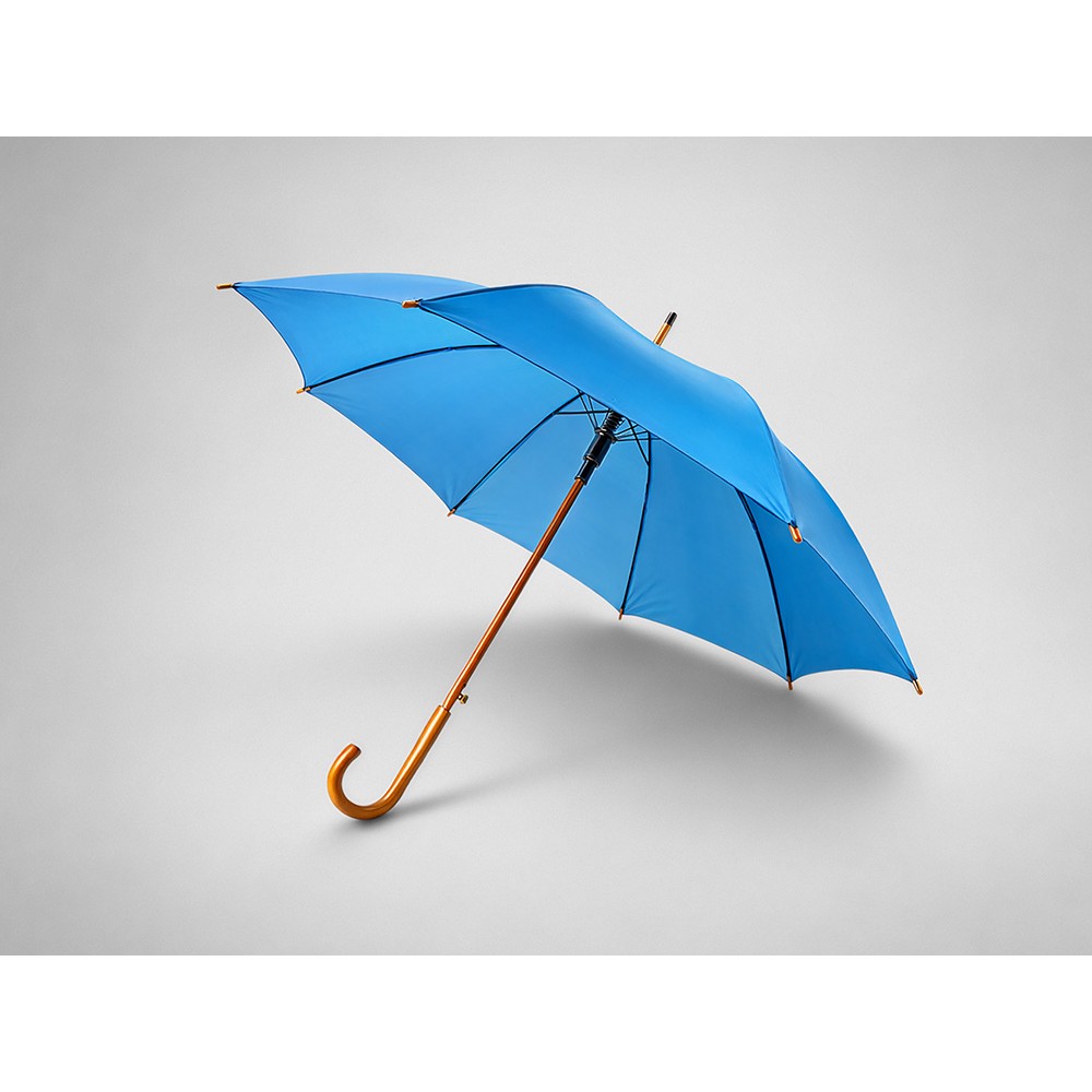 Полуавтоматический зонт-трость с деревянной ручкой выполнен из качественных материалов и устойчив к сильным порывам ветра. Яркие, сочные цвета в ассортименте.