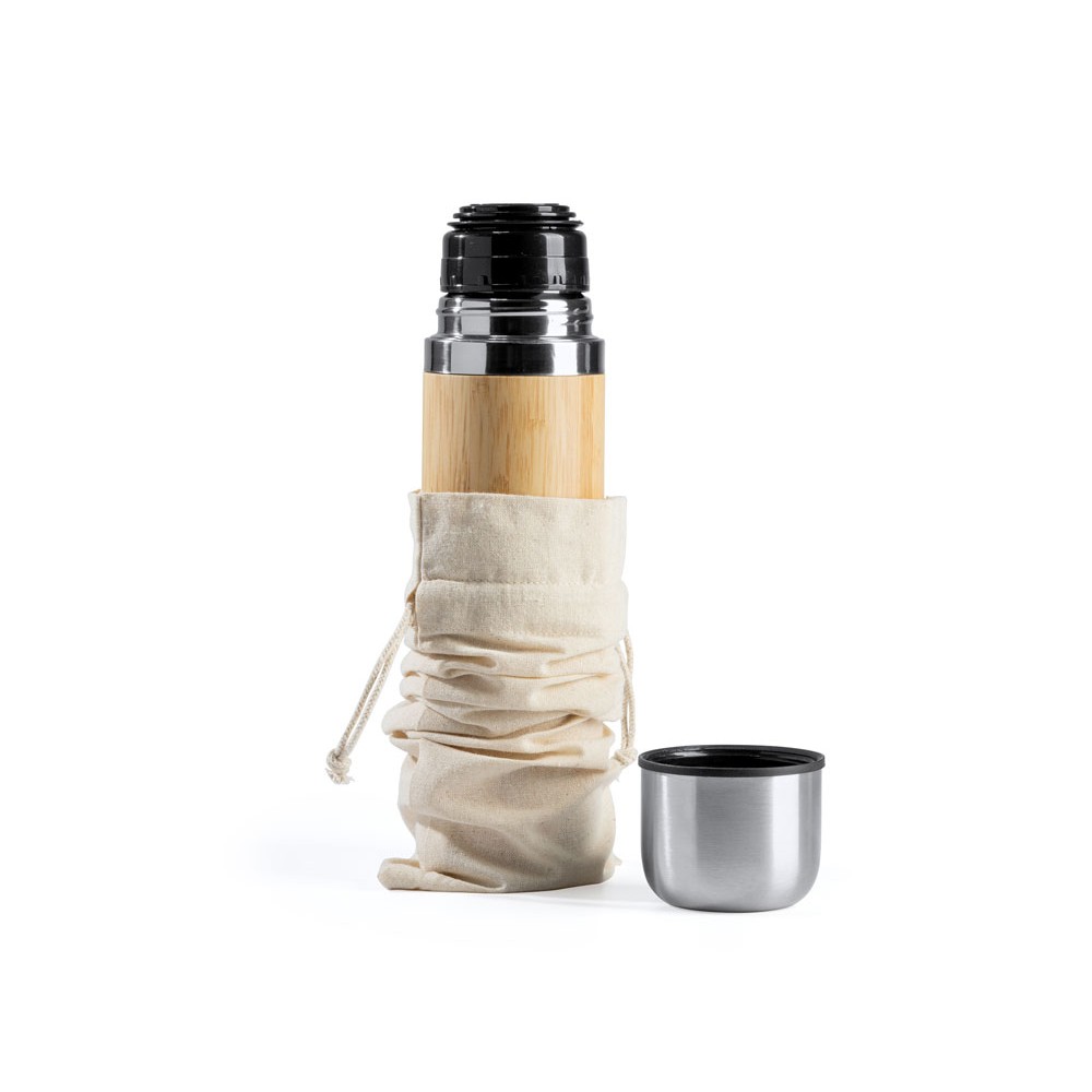 Чехол на шнурке из хлопка плотностью 120 г/м². Идеально подходит для бутылок или термосов.