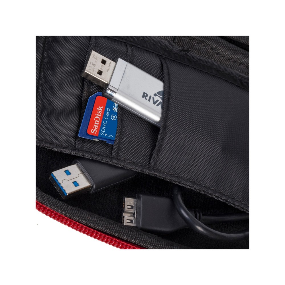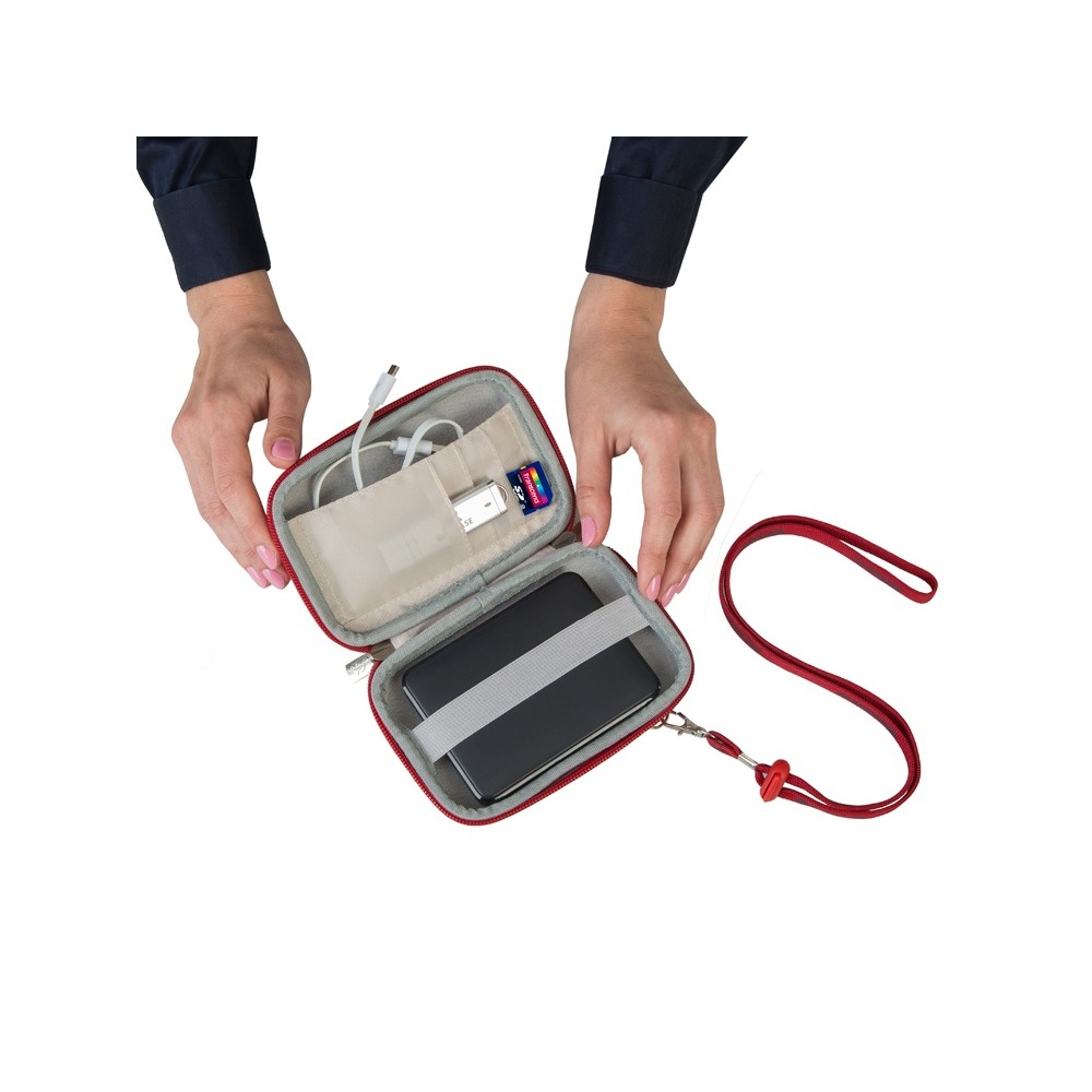 • Устройство надежно крепится внутри чехла специальной фиксирующей лентой, кроме того предусмотрены дополнительные внутренние карманы для кабеля, карт памяти и аксессуаров.