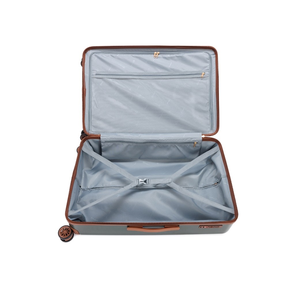 АМЕЛИЯ | AMELIA воплощает собой неповторимый образ, сочетающий эстетику ретро с современной функциональностью. Вся товарная линейка представлена в великолепных темно-изумрудном и кремовом оттенках. Контрастные детали насыщенного коричневого цвета, бронзовые ручки и фурнитура идеально дополняют дизайн, подчеркивают индивидуальность и выразительность каждой модели. Изготовленные из высококачественного АБС-пластика и поликарбоната, чемоданы АМЕЛИЯ | AMELIA обладают удивительной прочностью и легкостью. Четыре резиновых колеса с бесшумным ходом и возможностью поворота на 360° обеспечивают плавное передвижение по любой поверхности, сохраняя при этом полную маневренность. Интегрированный замок TSA с трехзначным кодом гарантирует защиту вашего багажа от несанкционированного доступа. Продуманная концепция больших отделений с перегородкой на молнии и дополнительными карманами максимально оптимизирует использование внутреннего пространства. Легкая телескопическая ручка с несколькими положениями фиксации обеспечивает комфорт в использовании для людей разного роста. Удобные ручки сбоку и на дне корпуса облегчают загрузку и выгрузку чемодана. Боковые держатели позволяют разместить дополнительные дорожные аксессуары.