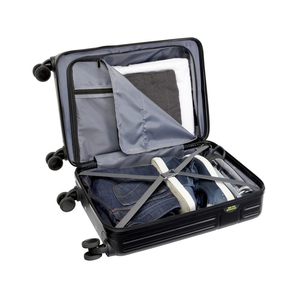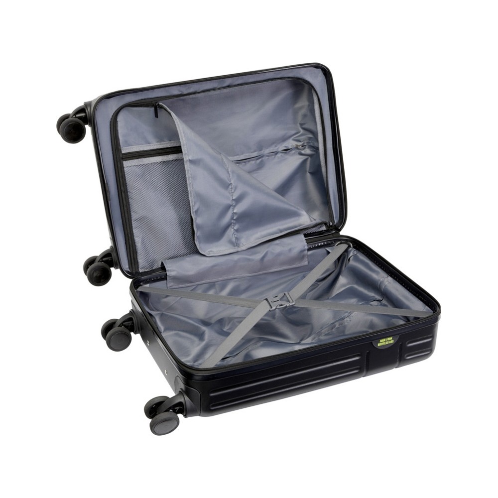 Изготовленный из ударопрочной переработанной пластмассы и облицовки из вторичного ПЭТ, 20-дюймовый чемодан для ручной клади на колесиках Rover отличается не только качеством, но и экологичностью. Он имеет двухтрубную алюминиевую раму, 4 колесика, вращающихся на 360 градусов, встроенный кодовый замок TSA, удобную ручку для переноски и внутренние отделения-органайзеры. Можно брать с собой в качестве ручной клади на рейсах большинства основных авиакомпаний. Данный чемодан на колесах сертифицирован GRS, включая печать, что делает его более экологичным выбором. GRS certified recycled ABS.