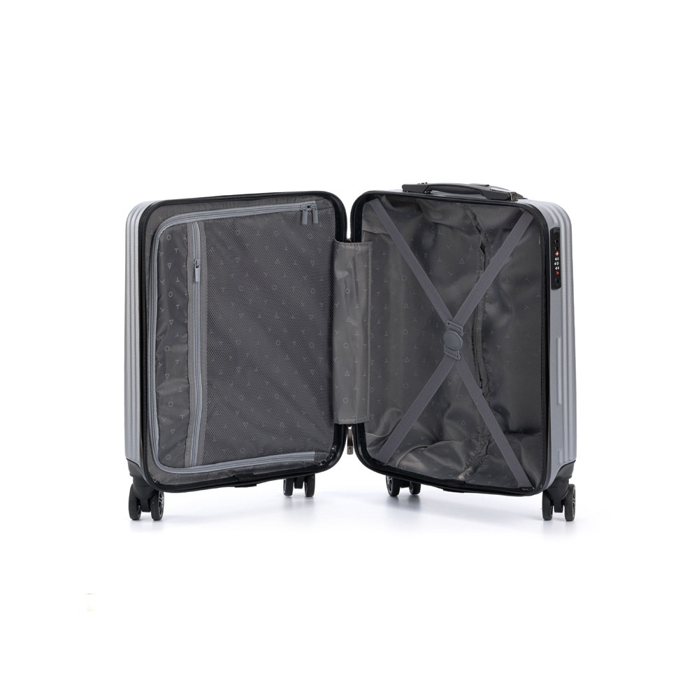 Чемодан полностью раскрывается на 2 вместительных отделения, с перегородкой на молнии и ремнями в форме X для надежной фиксации вещей на месте.