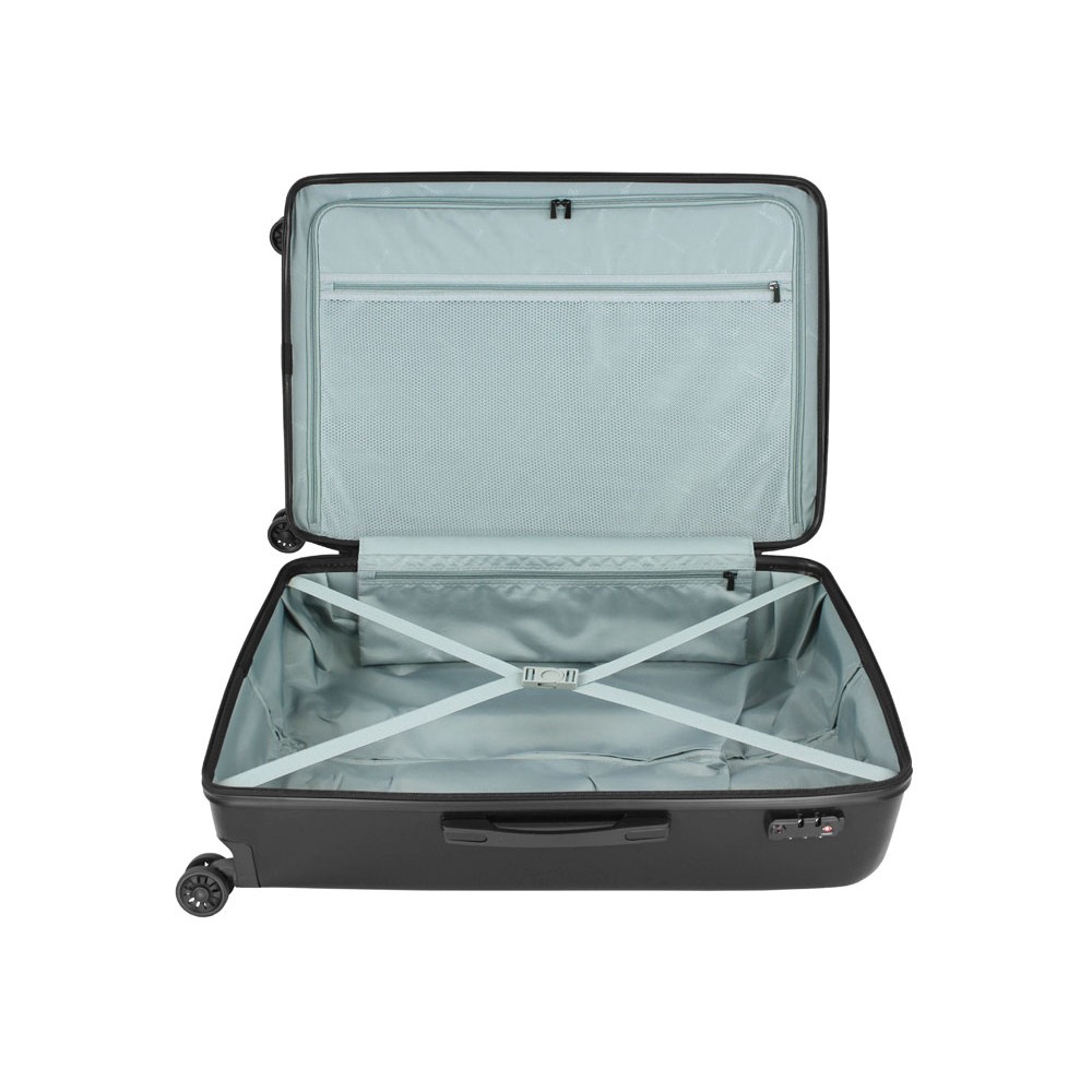 Внешняя организация: телескопическая ручка, кодовый замок TSA, 4 двойных колеса, боковая ручка, ручка на дне