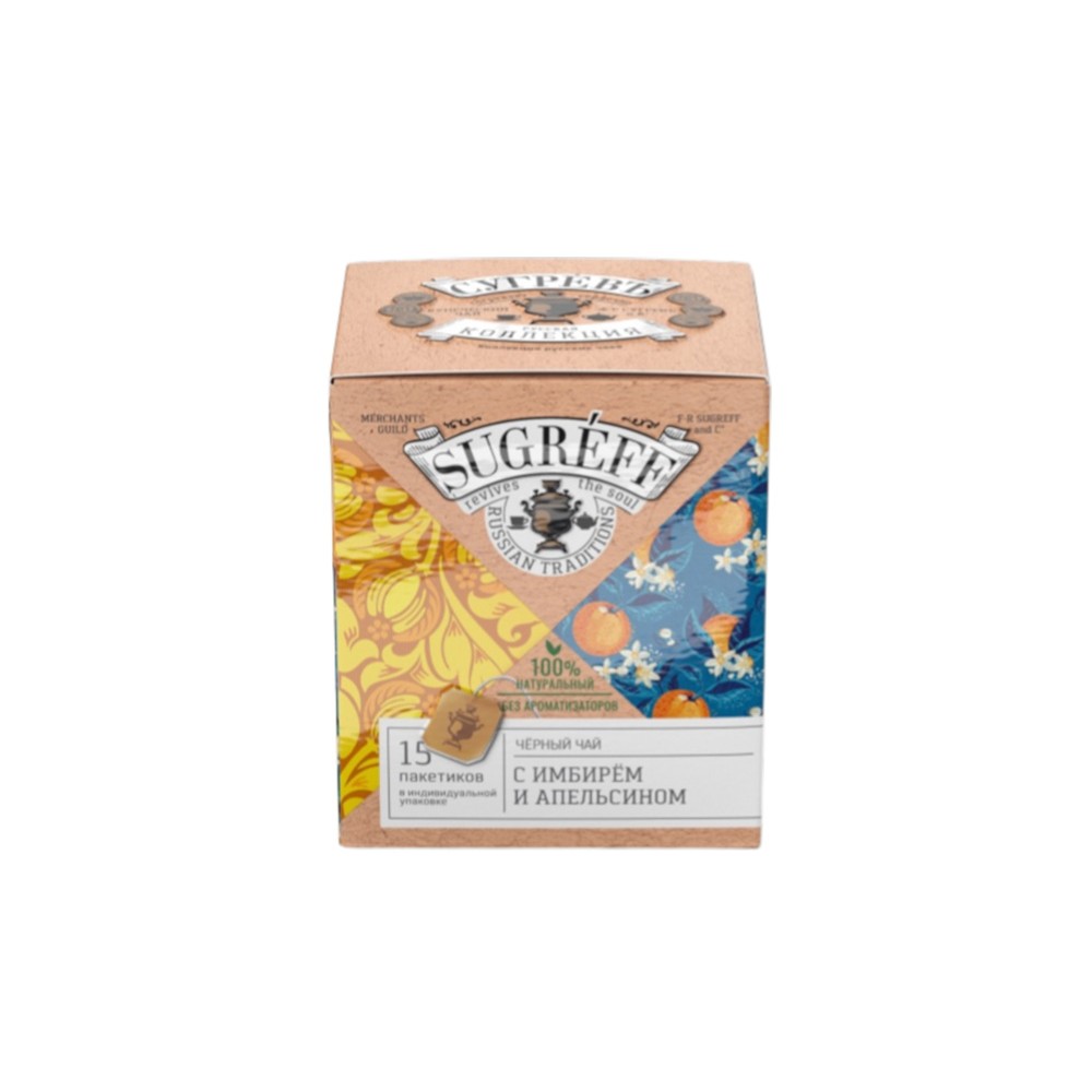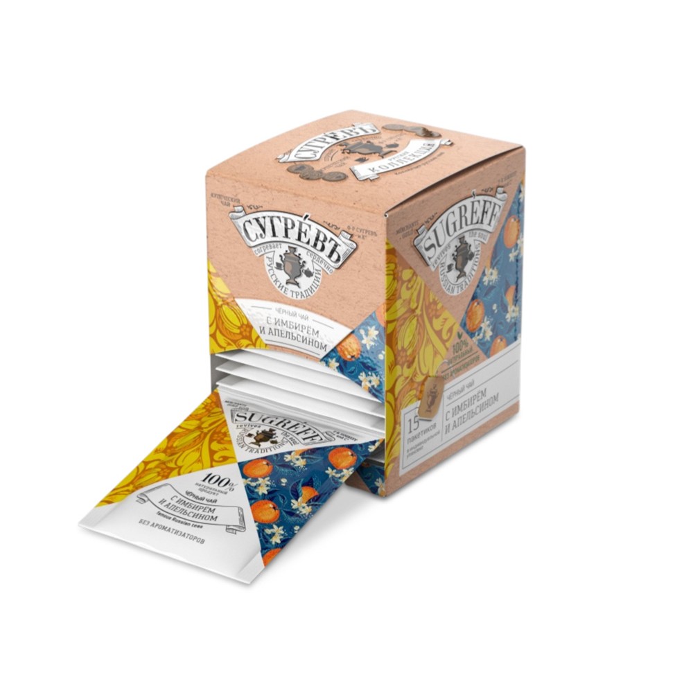 Черный чай с имбирем и апельсином в индивидуальном саше конверте, 15 пакетиков