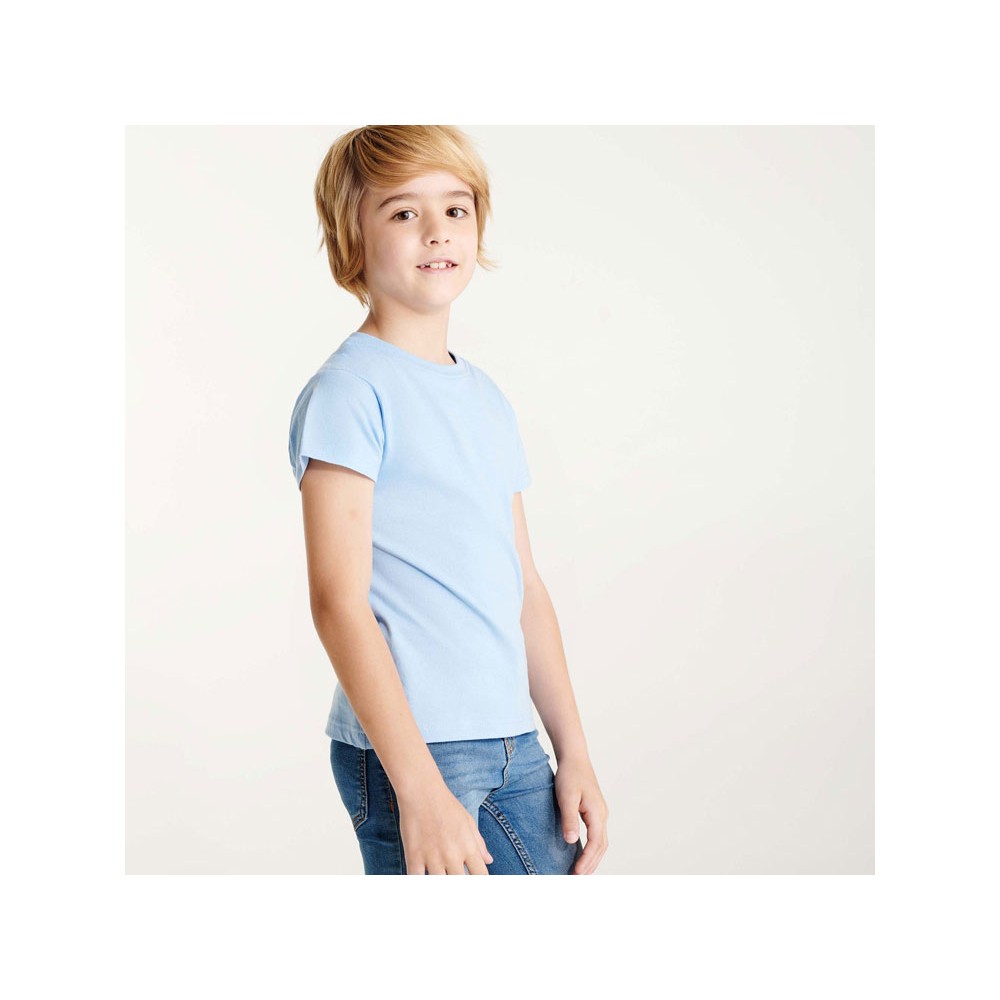 Детская футболка с коротким рукавом с отделкой по горловине двойным рибом с эластаном. Футболка с боковыми швами. Широкая палитра цветов.