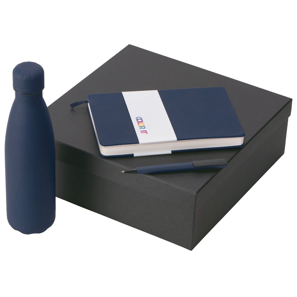 • Подарочный набор c блокнотом C3, ручкой и термобутылкой, темно-синий