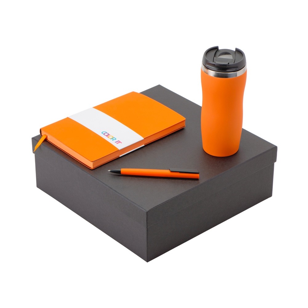 • Подарочный набор c блокнотом С1, ручкой и термокружкой Mony Steel, оранжевый